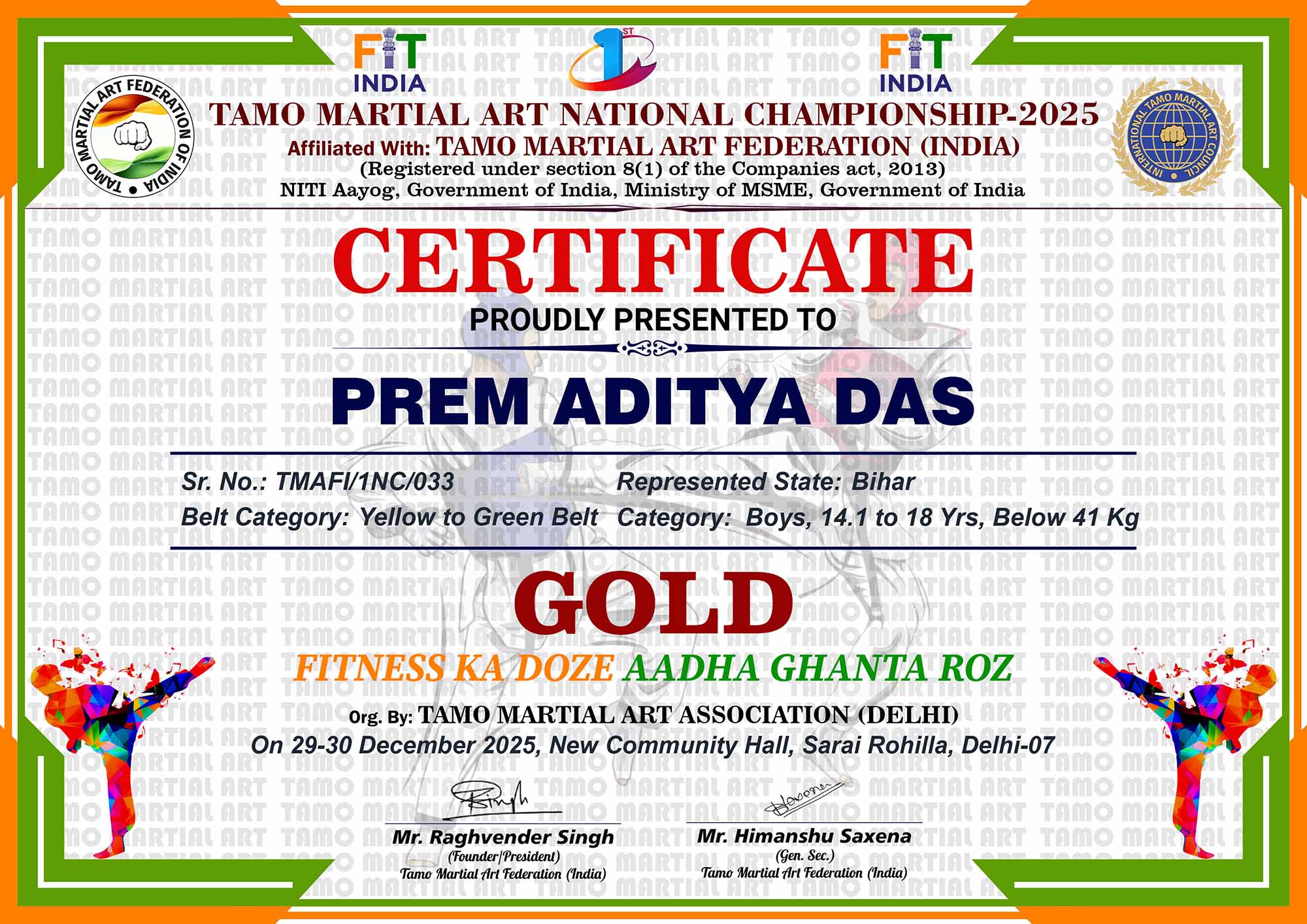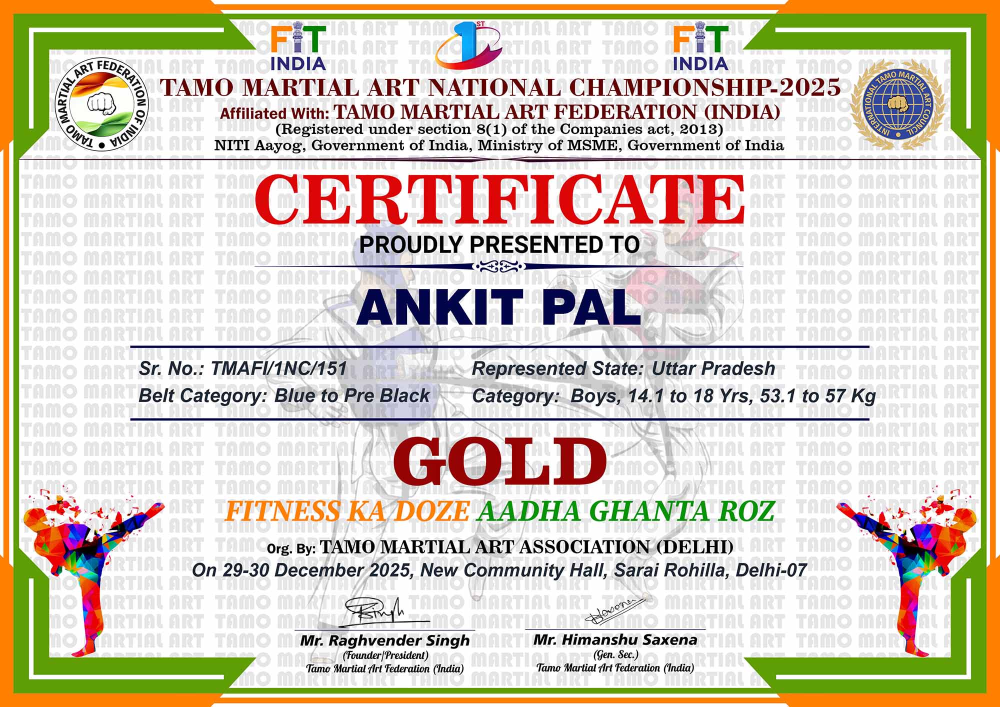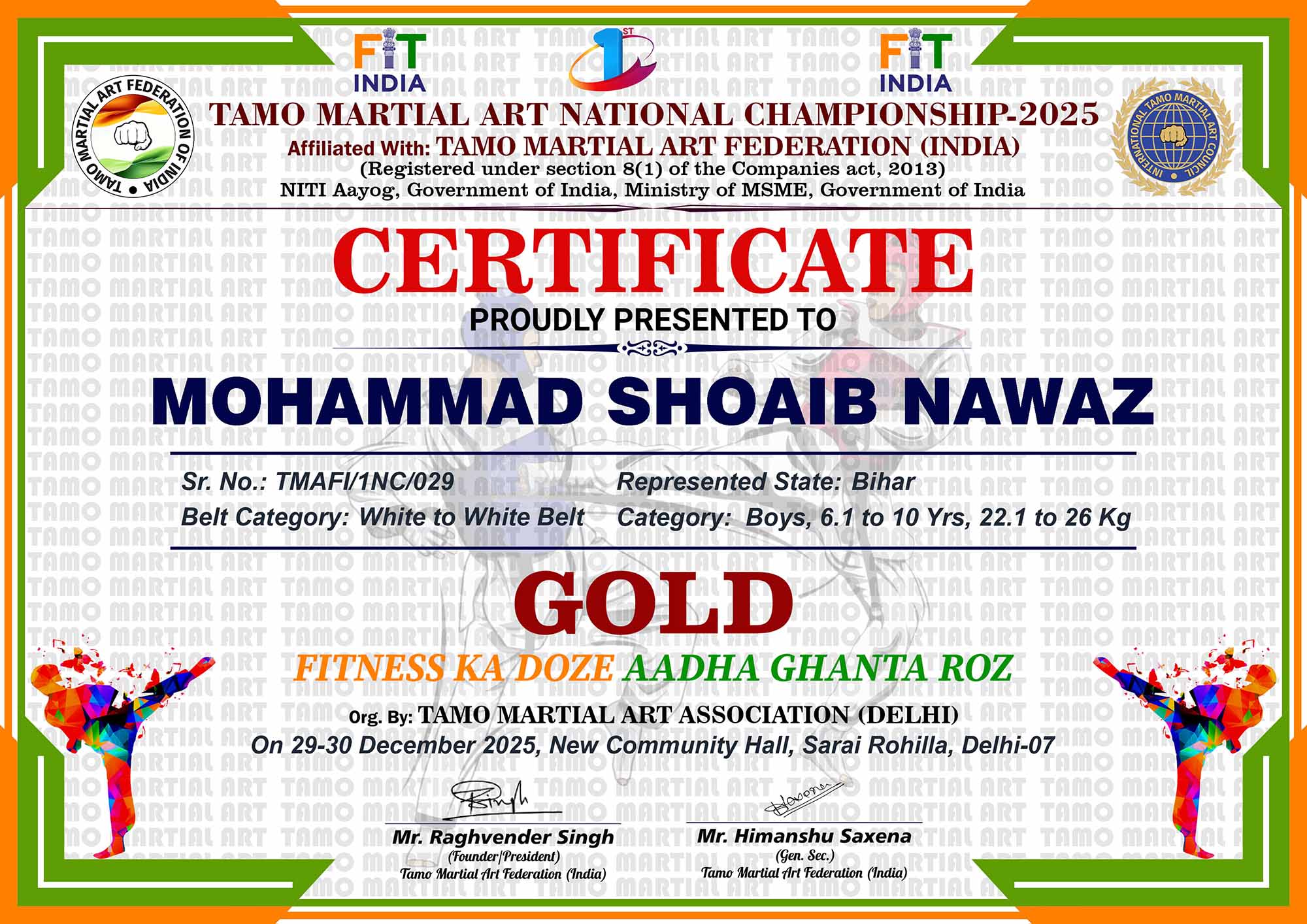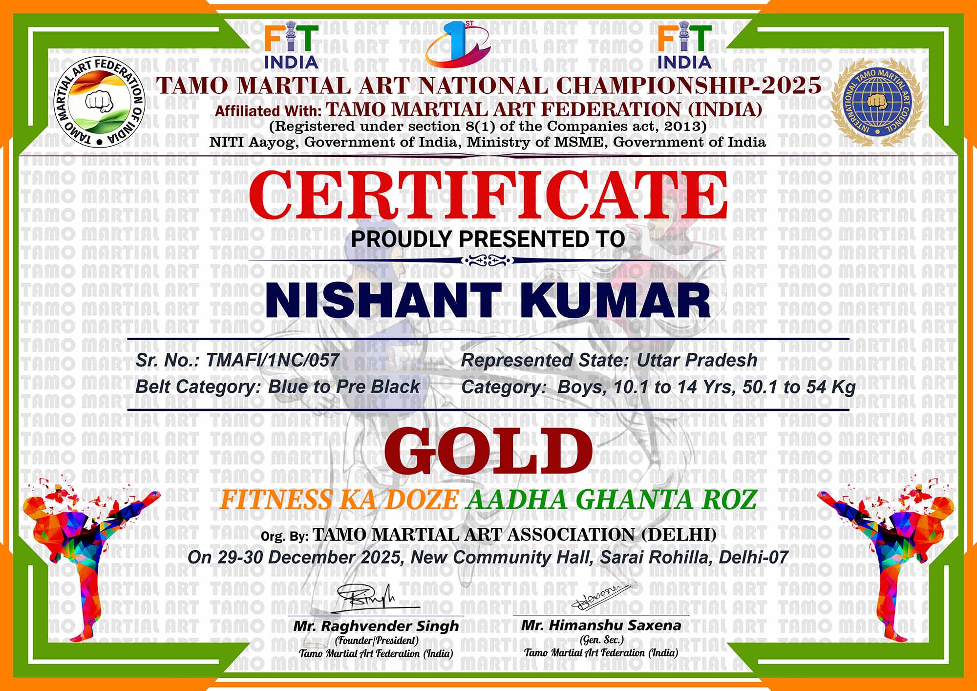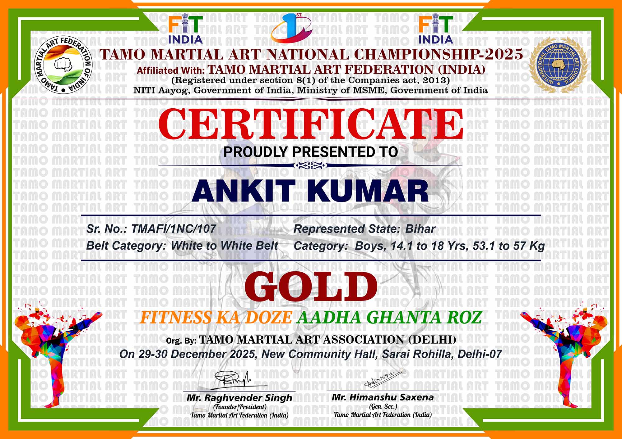1st Tamo Martial Art National Championship-202529-30th December 2025, , Central - Delhi |