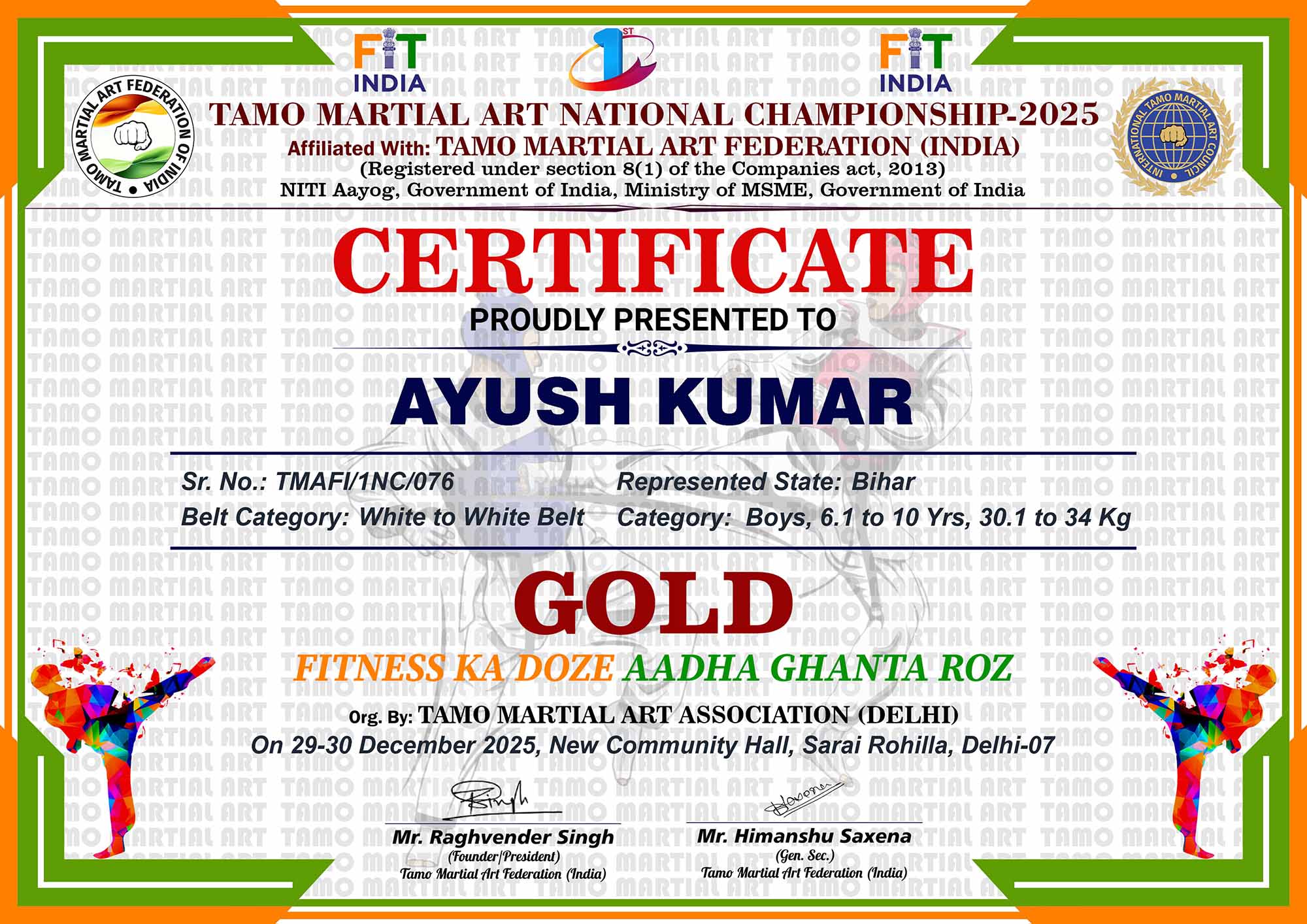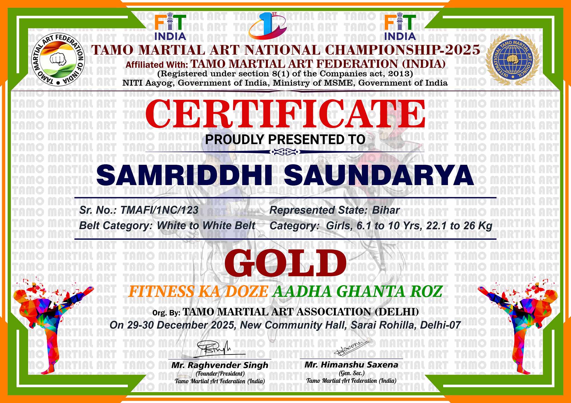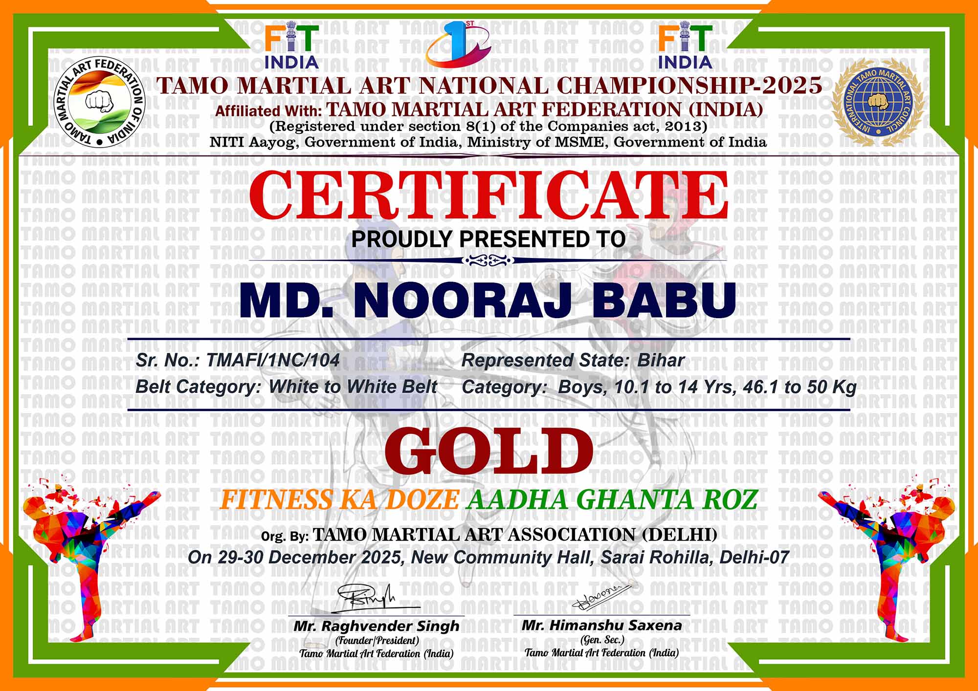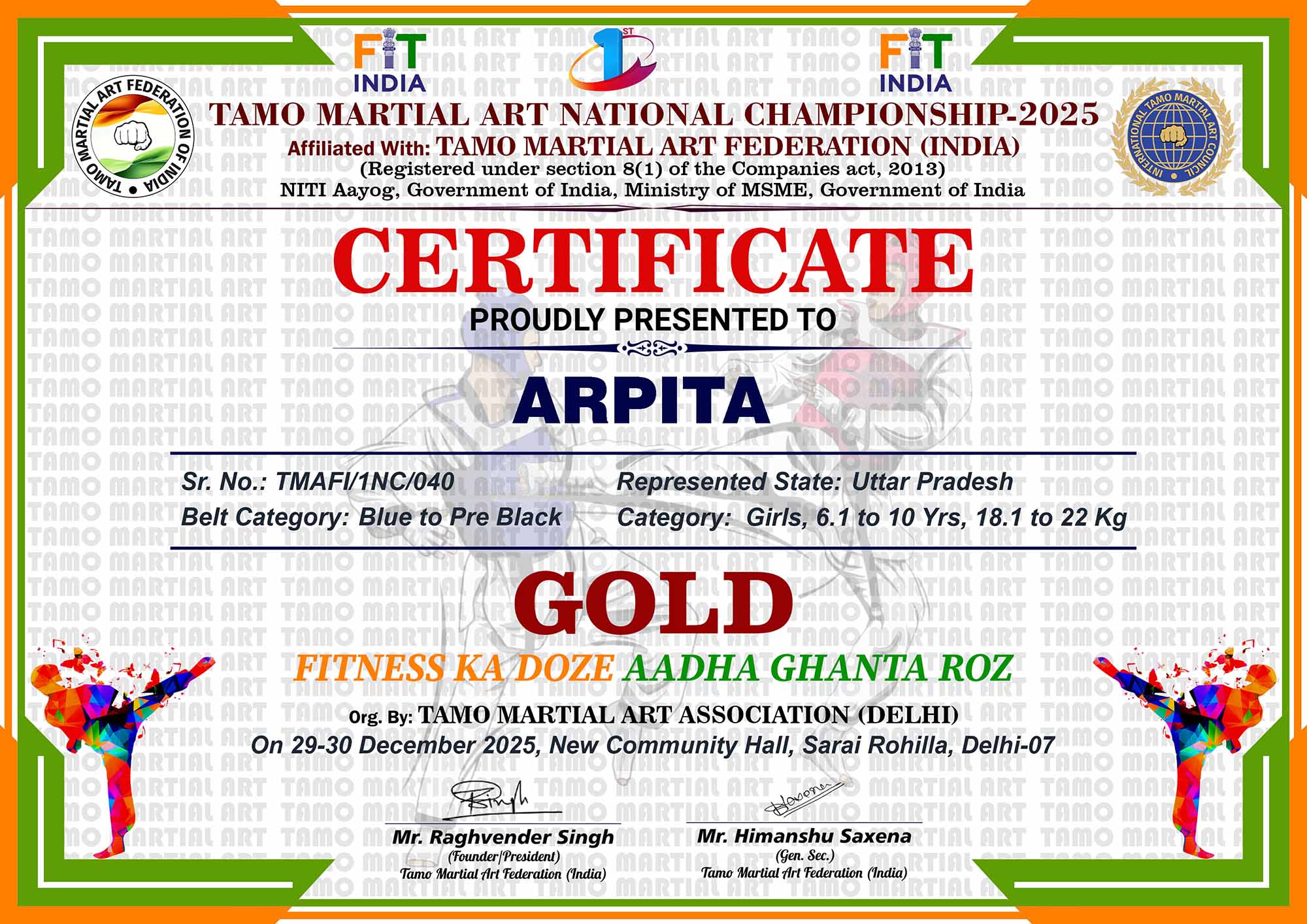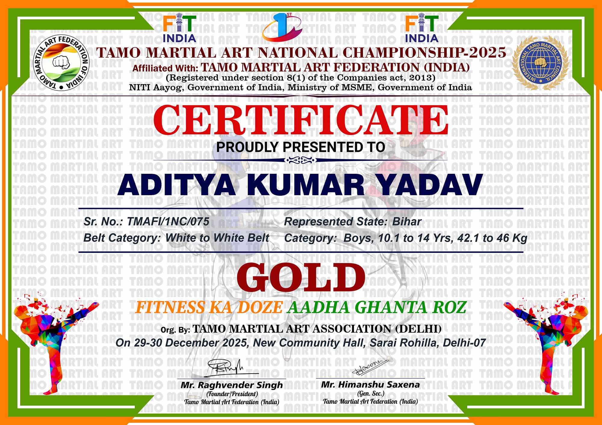 1st Tamo Martial Art National Championship-202529-30th December 2025, , Central - Delhi |