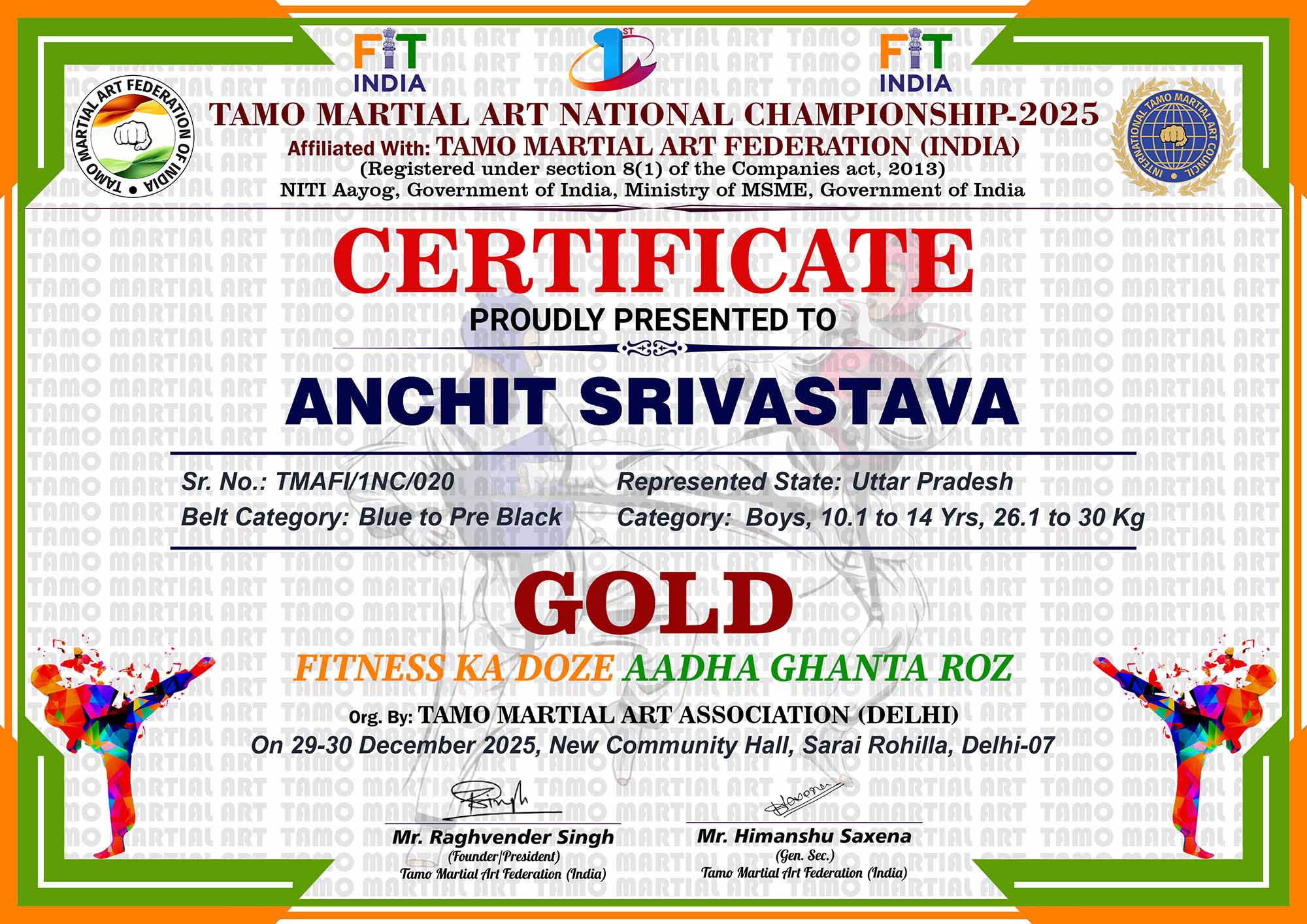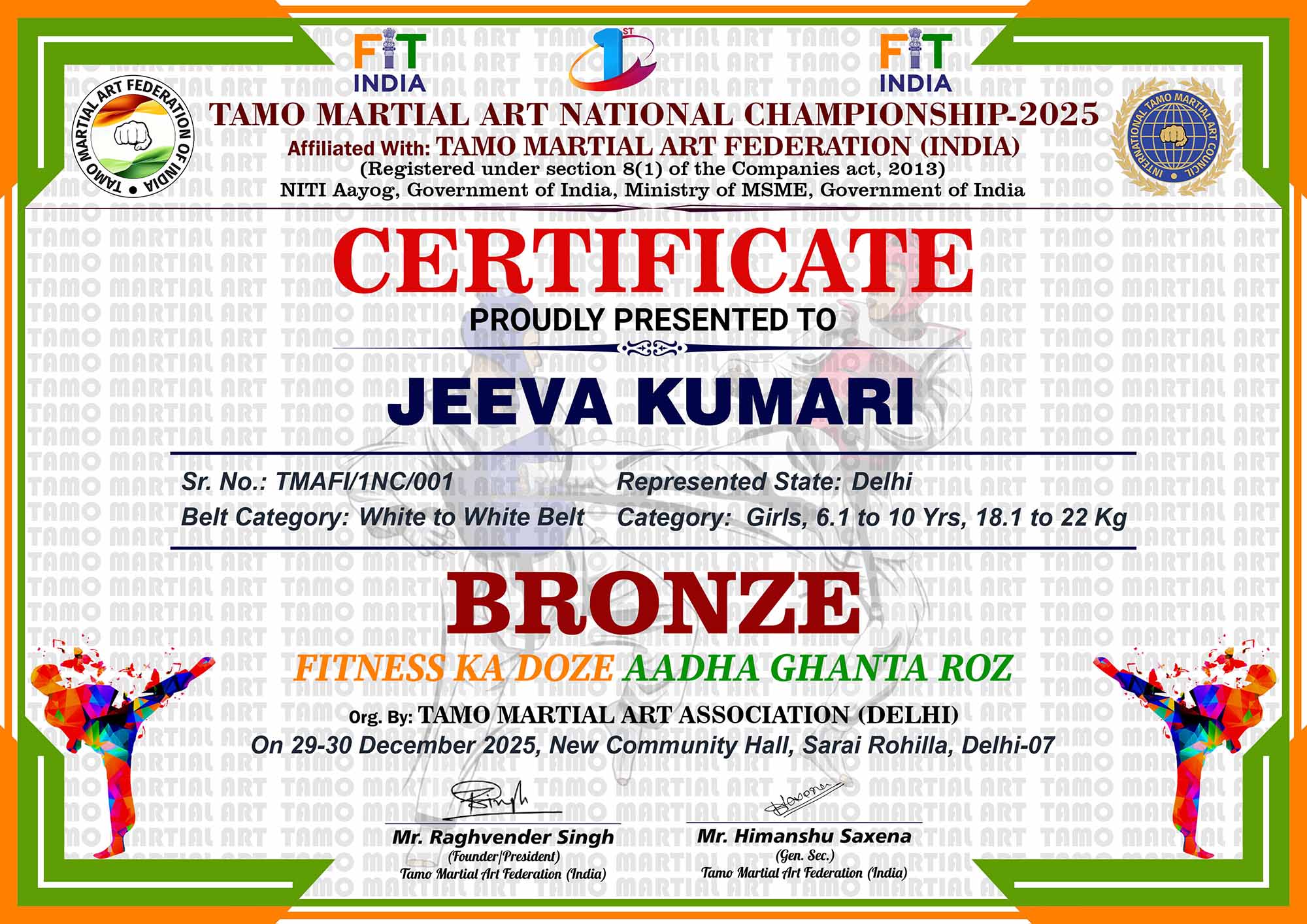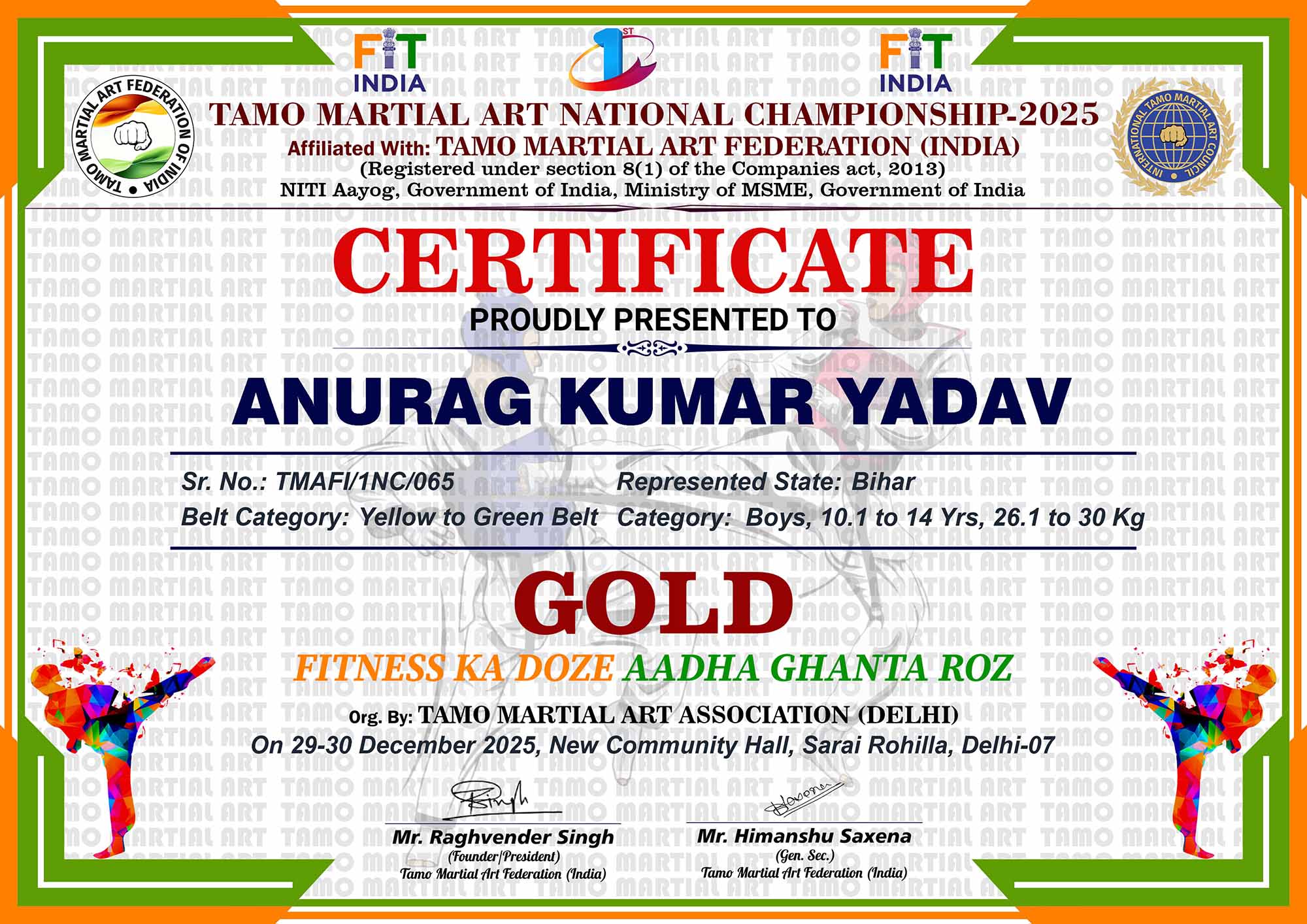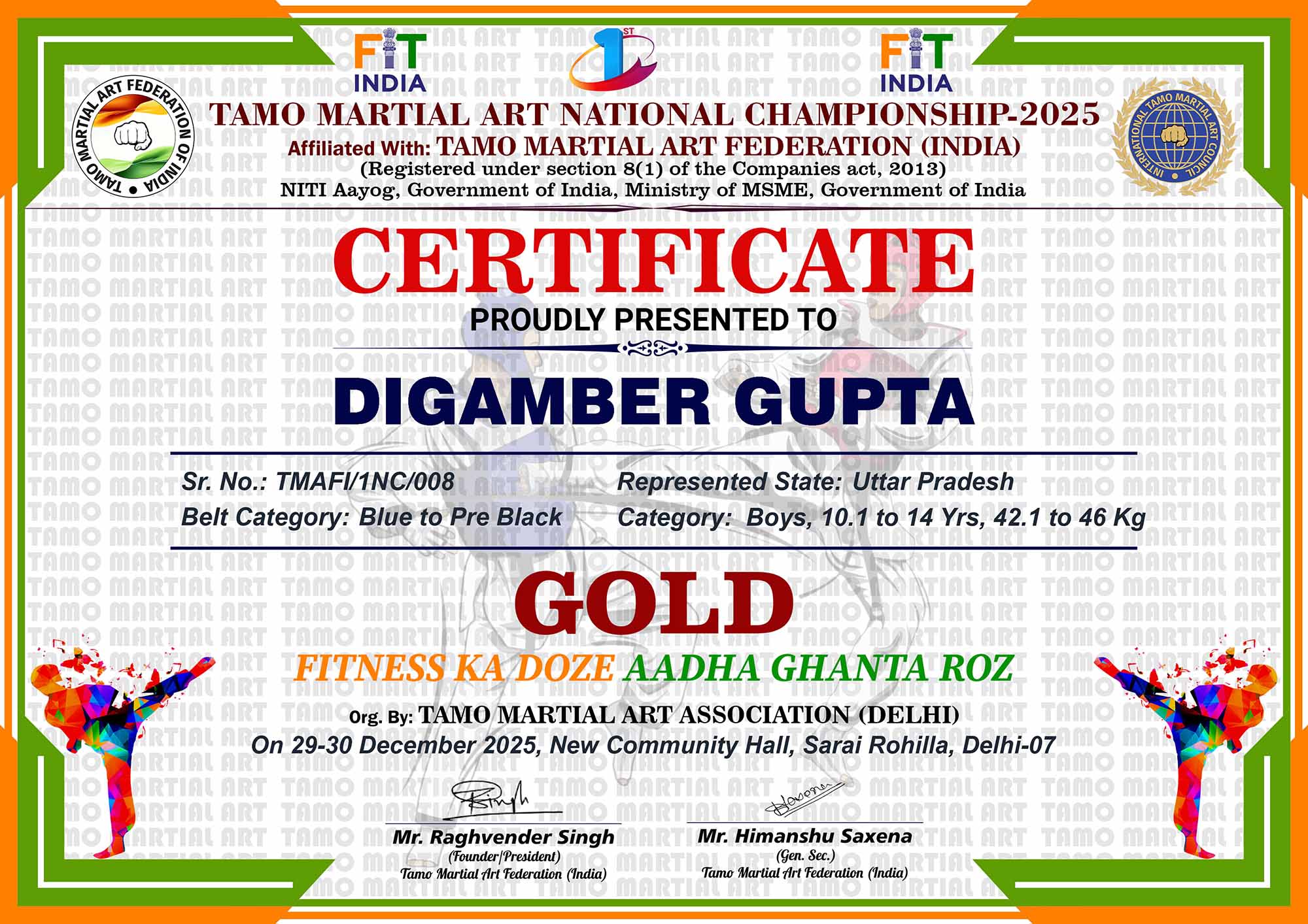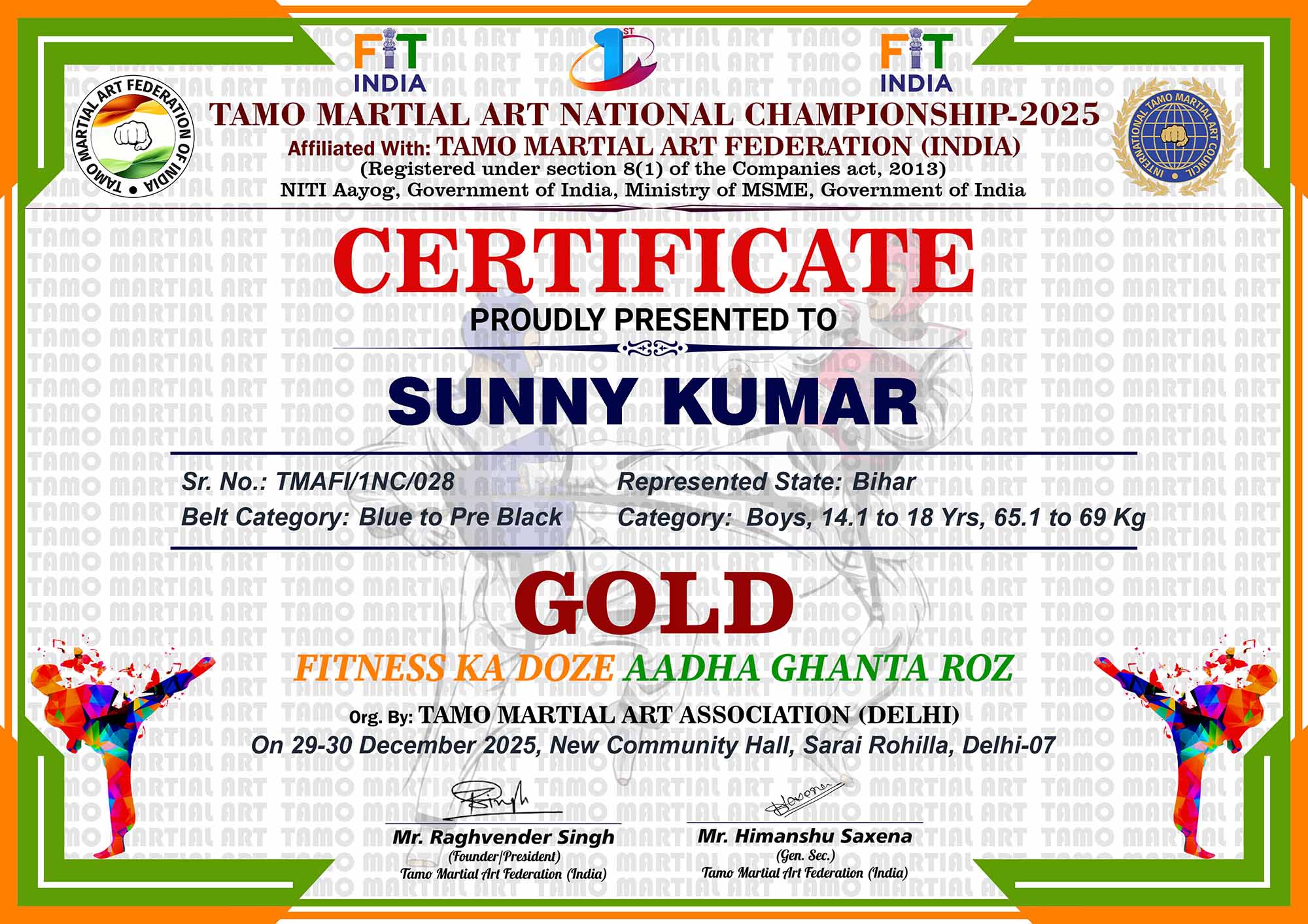 1st Tamo Martial Art National Championship-202529-30th December 2025, , Central - Delhi |