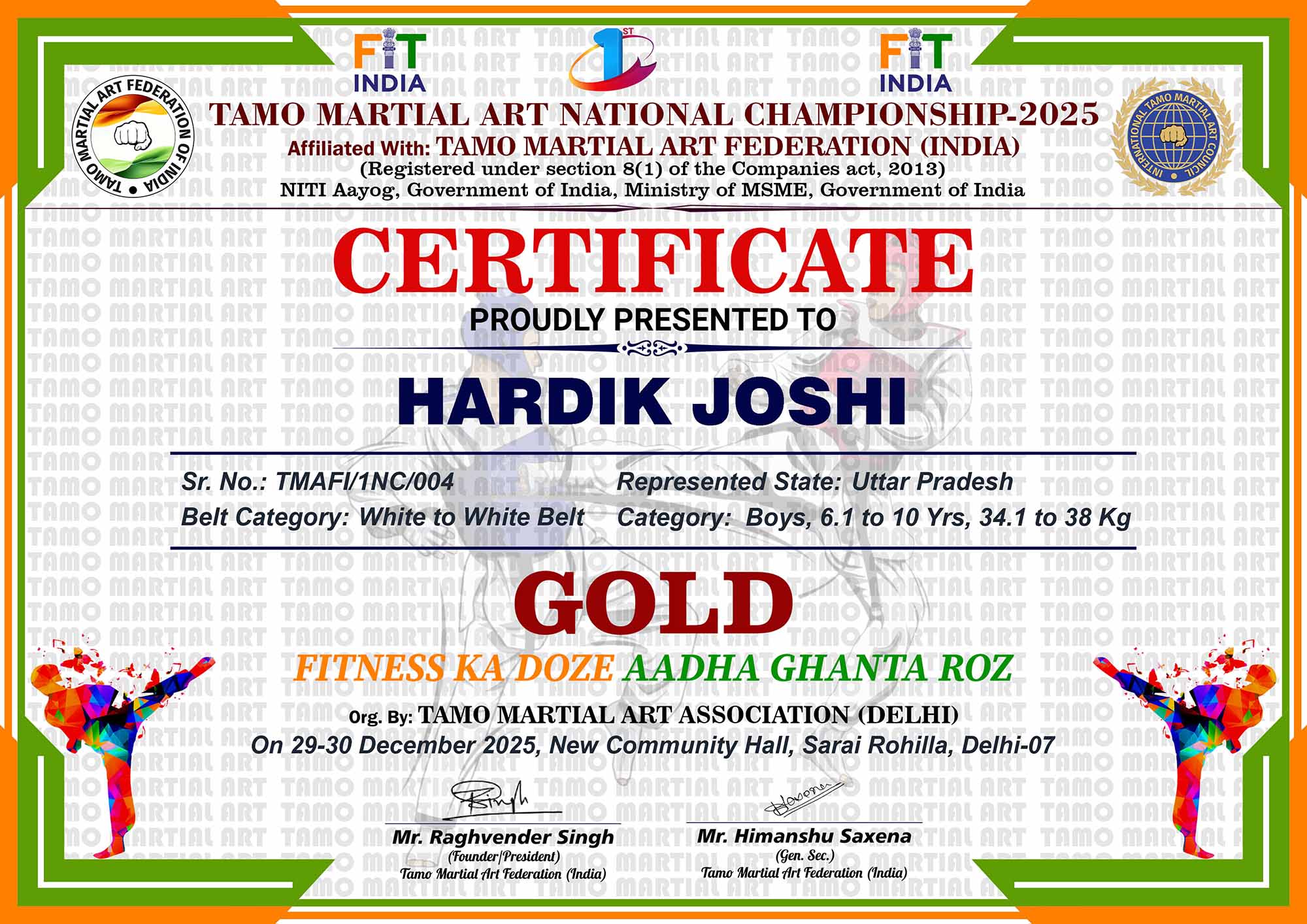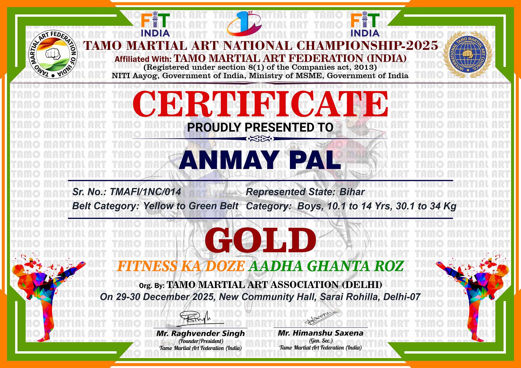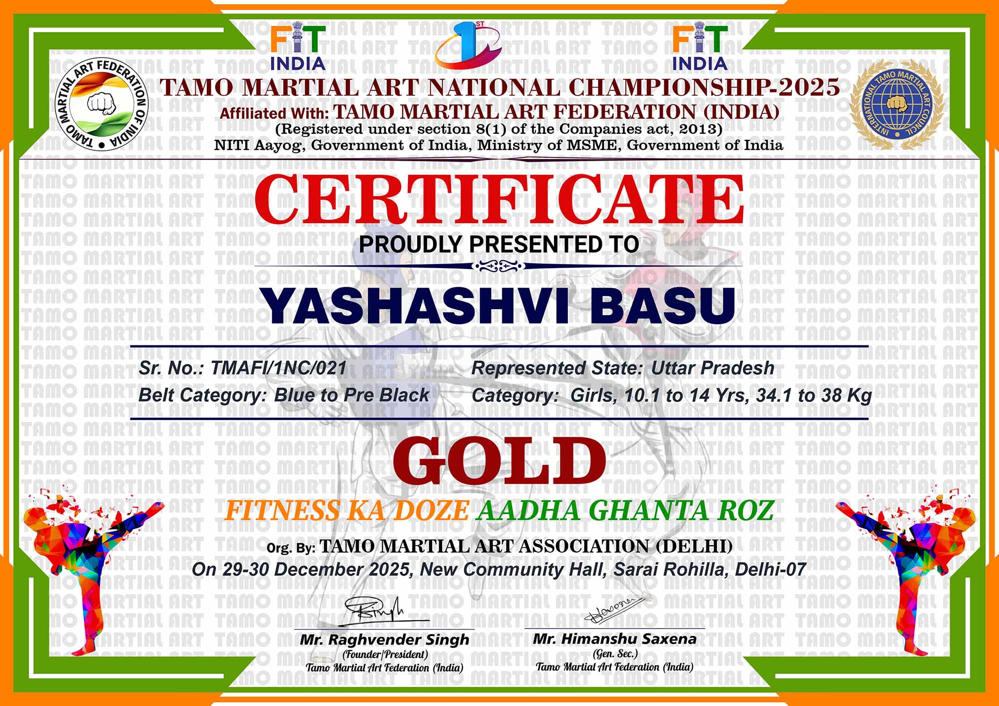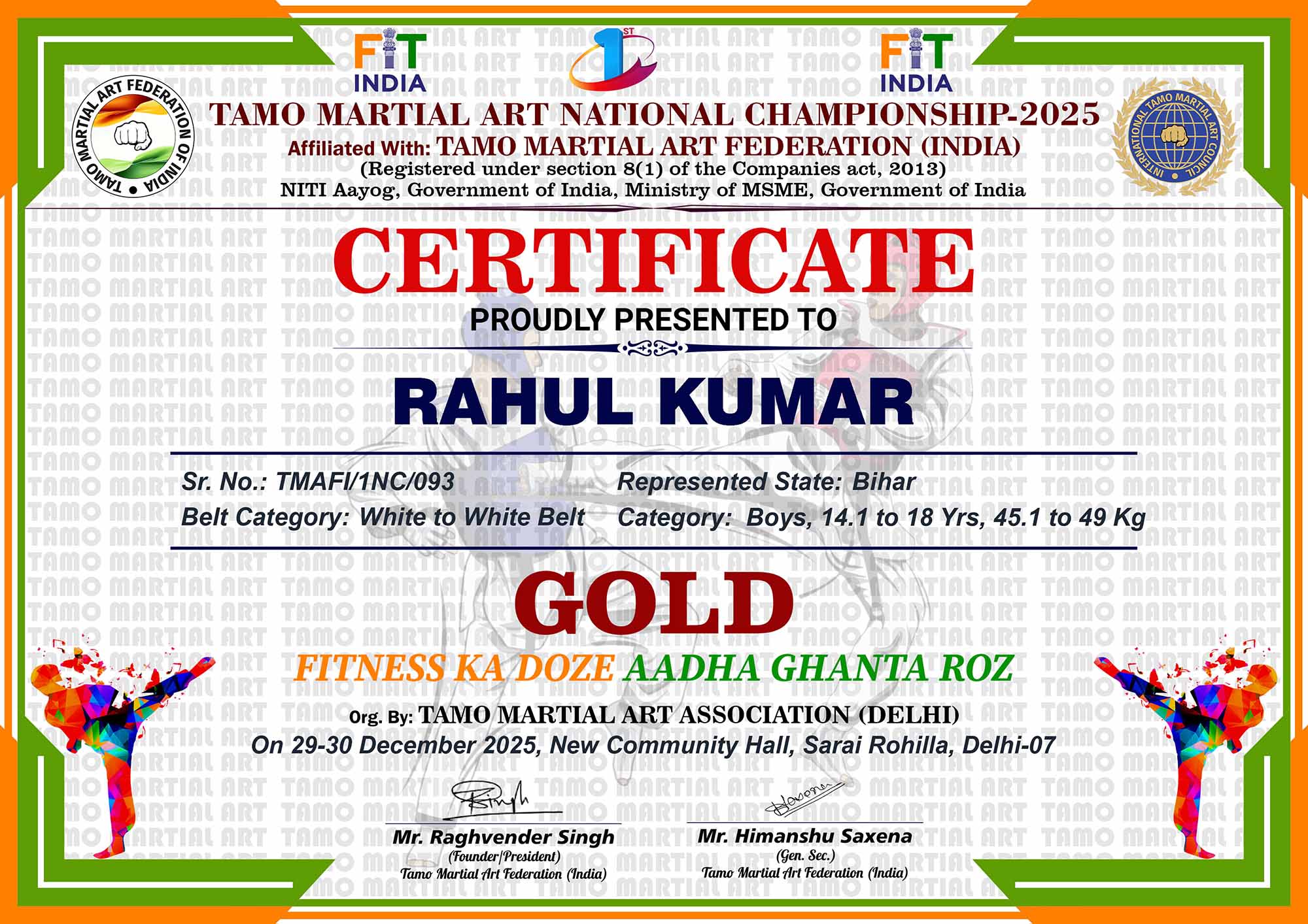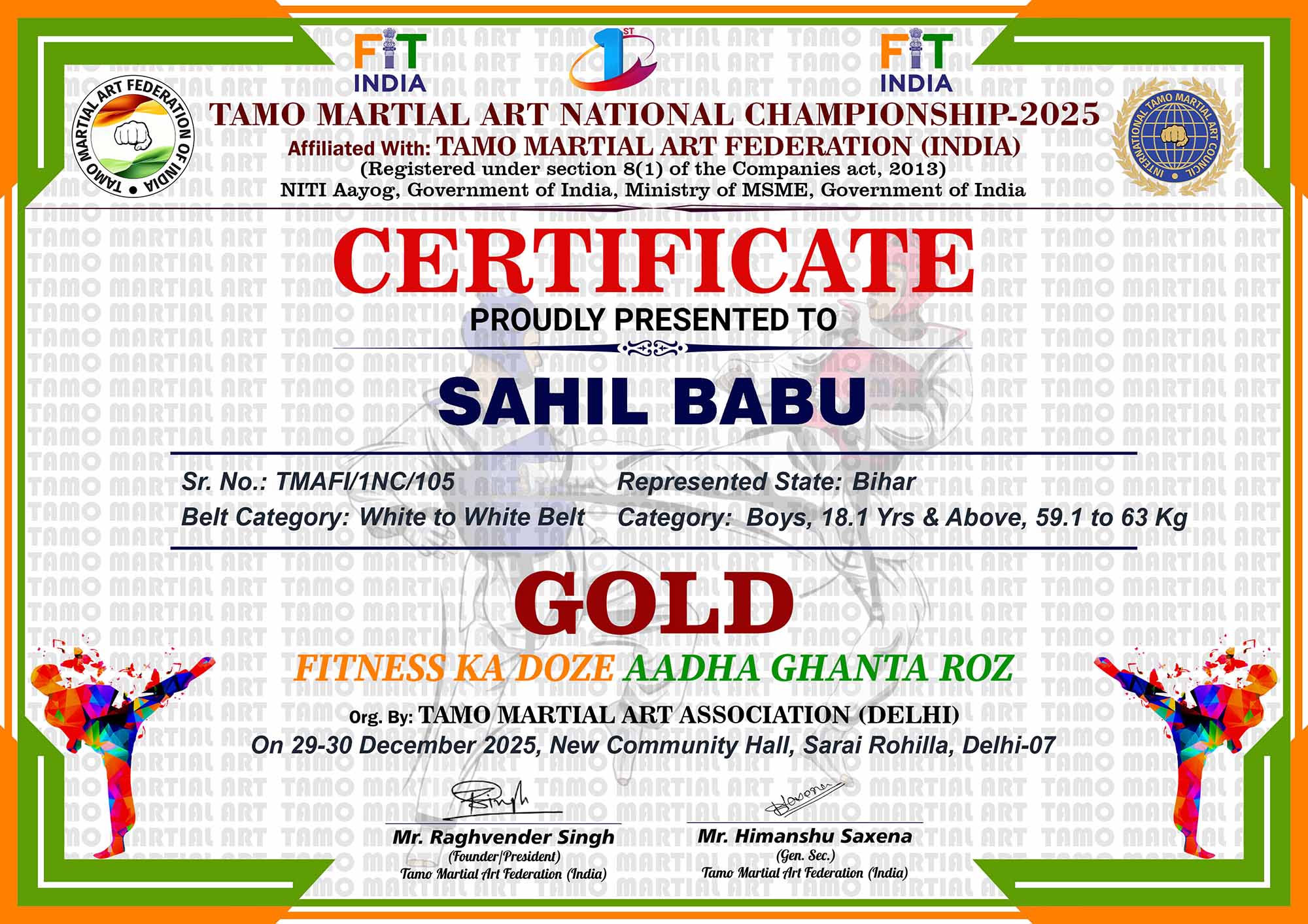 1st Tamo Martial Art National Championship-202529-30th December 2025, , Central - Delhi |