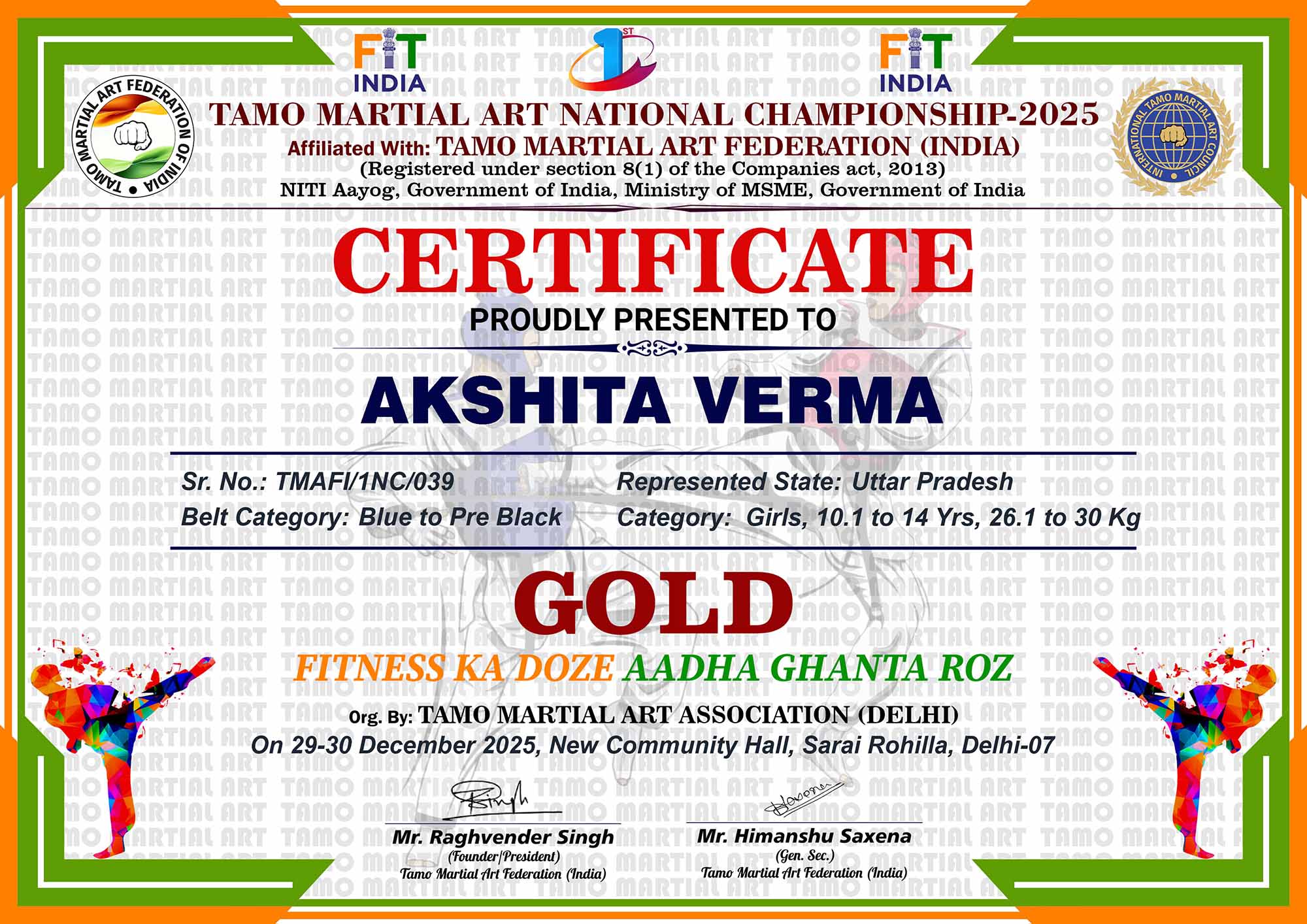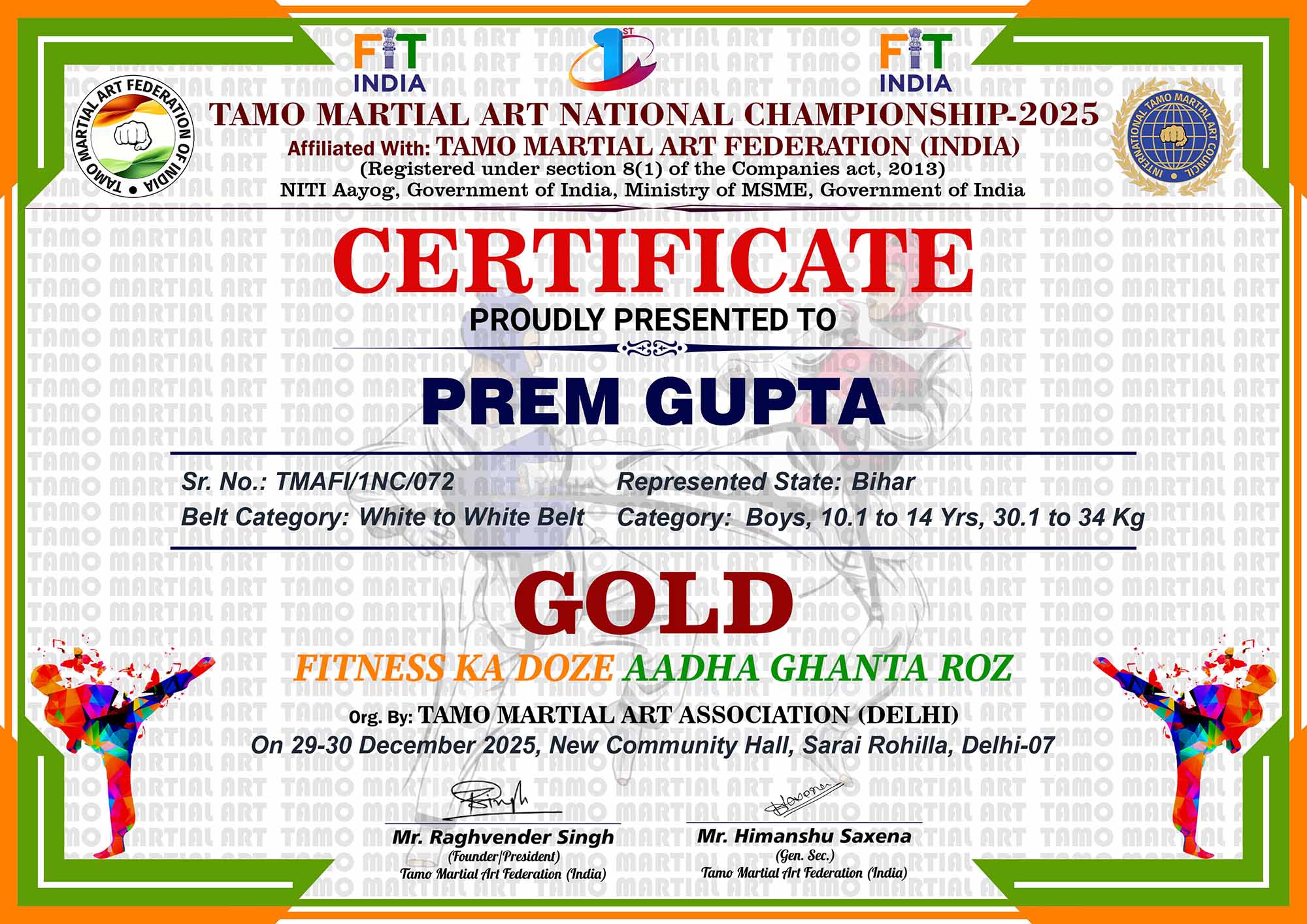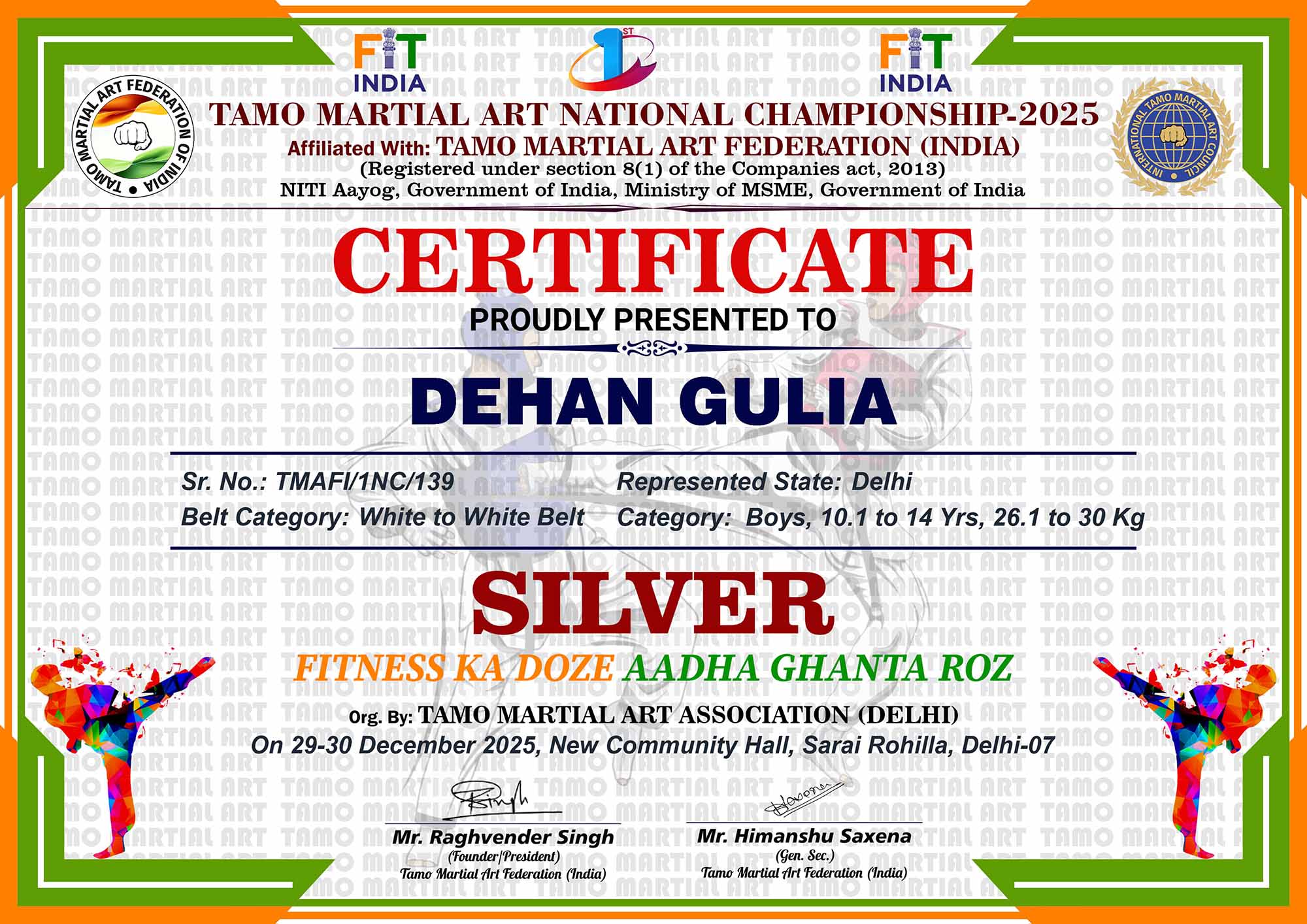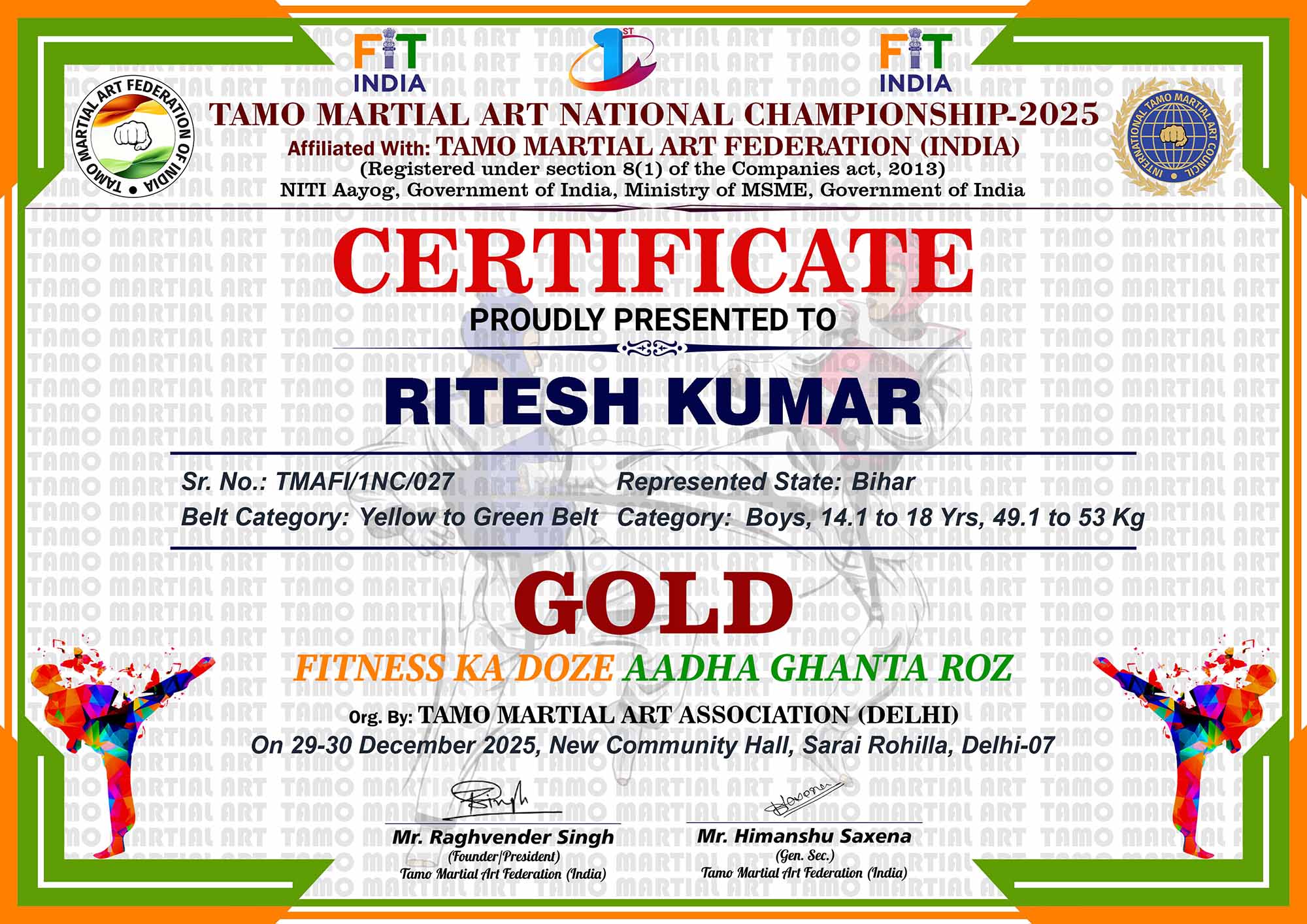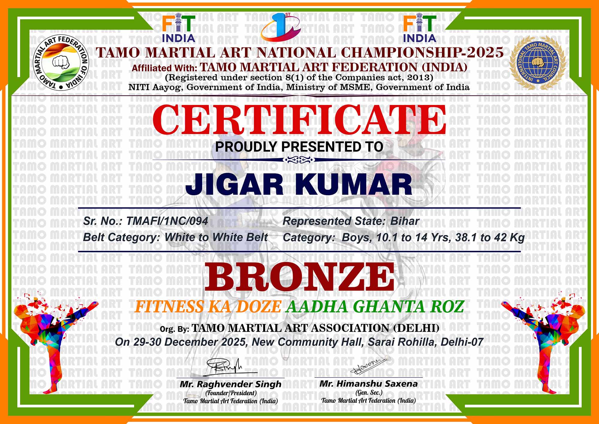 1st Tamo Martial Art National Championship-202529-30th December 2025, , Central - Delhi |
