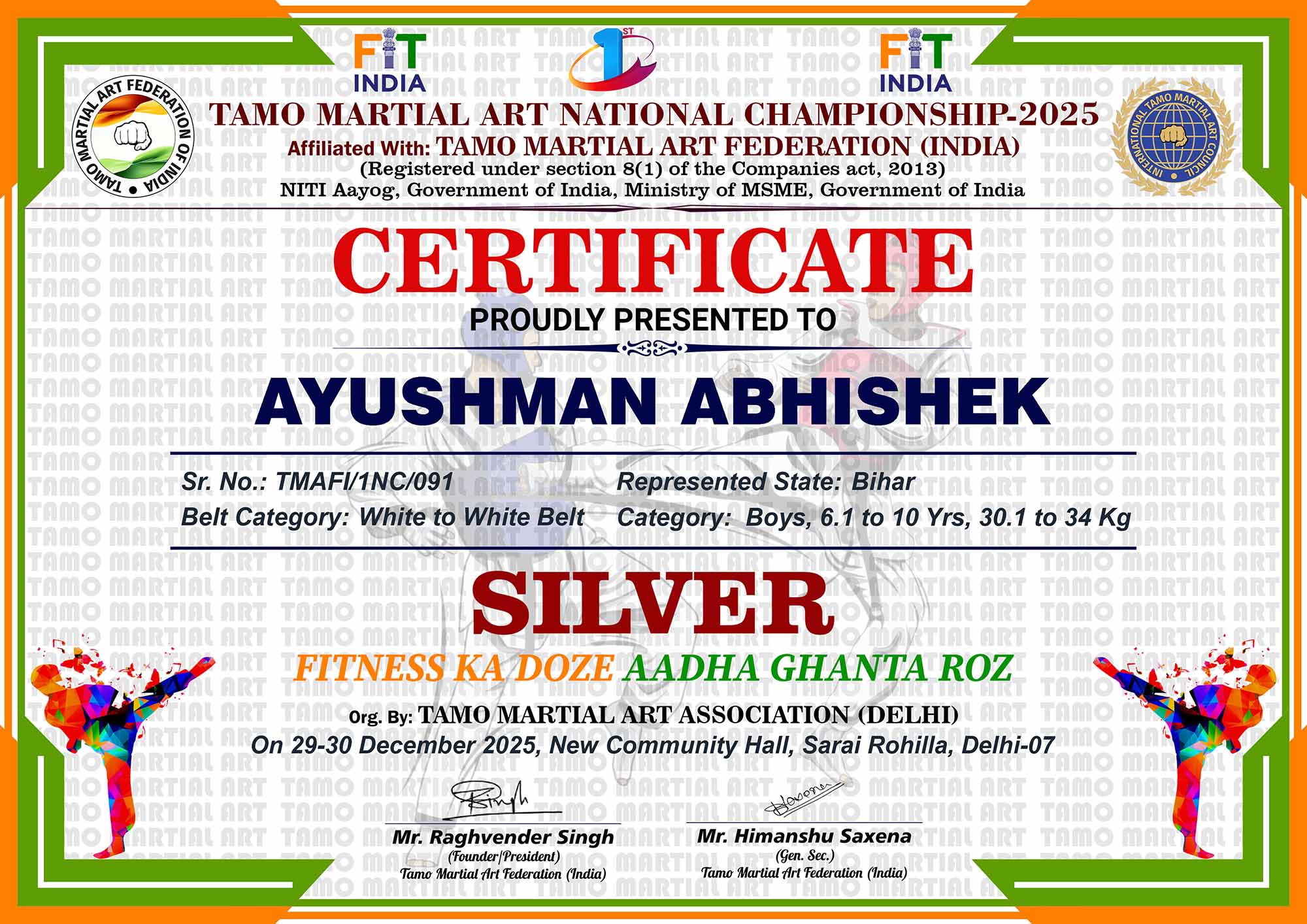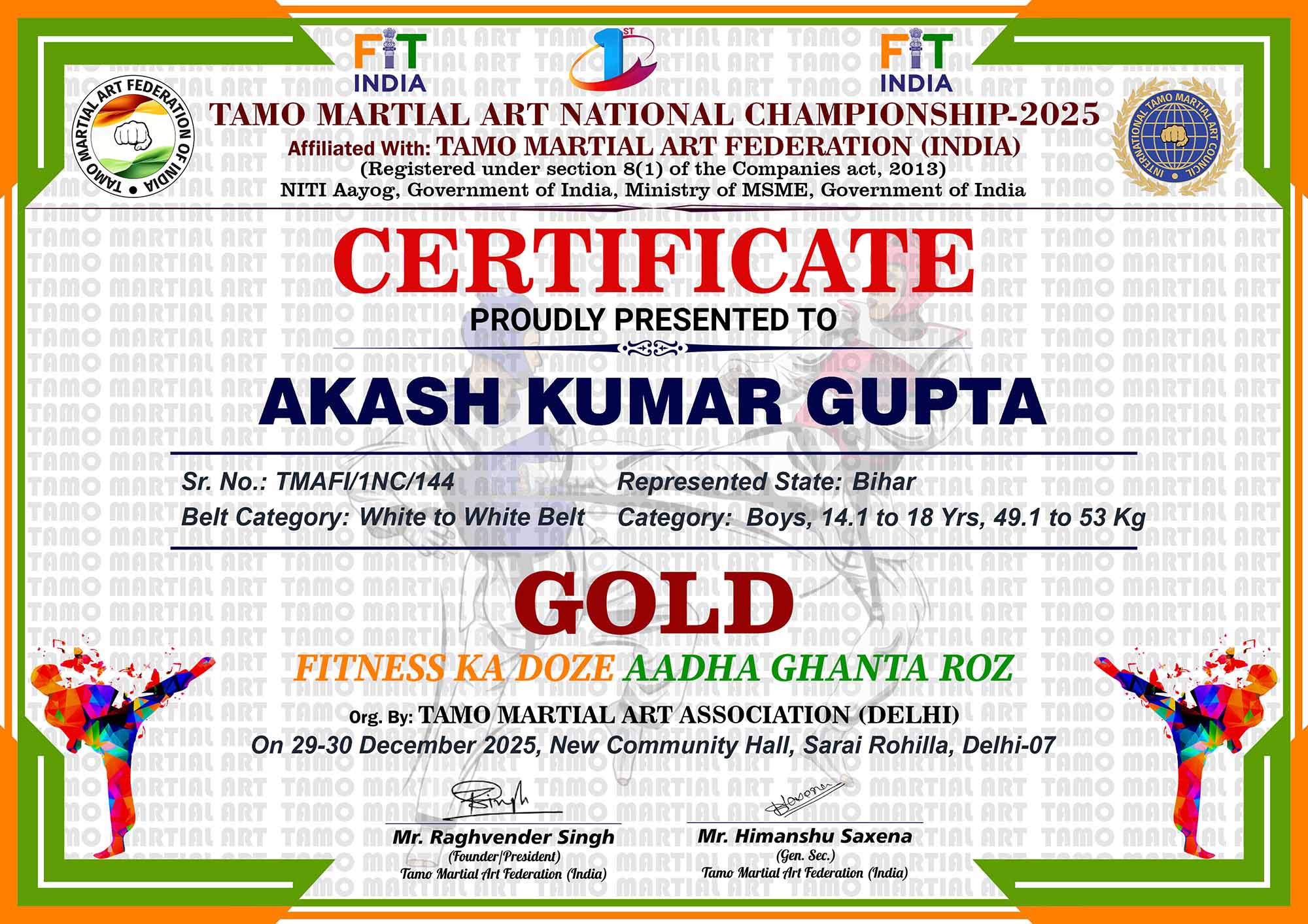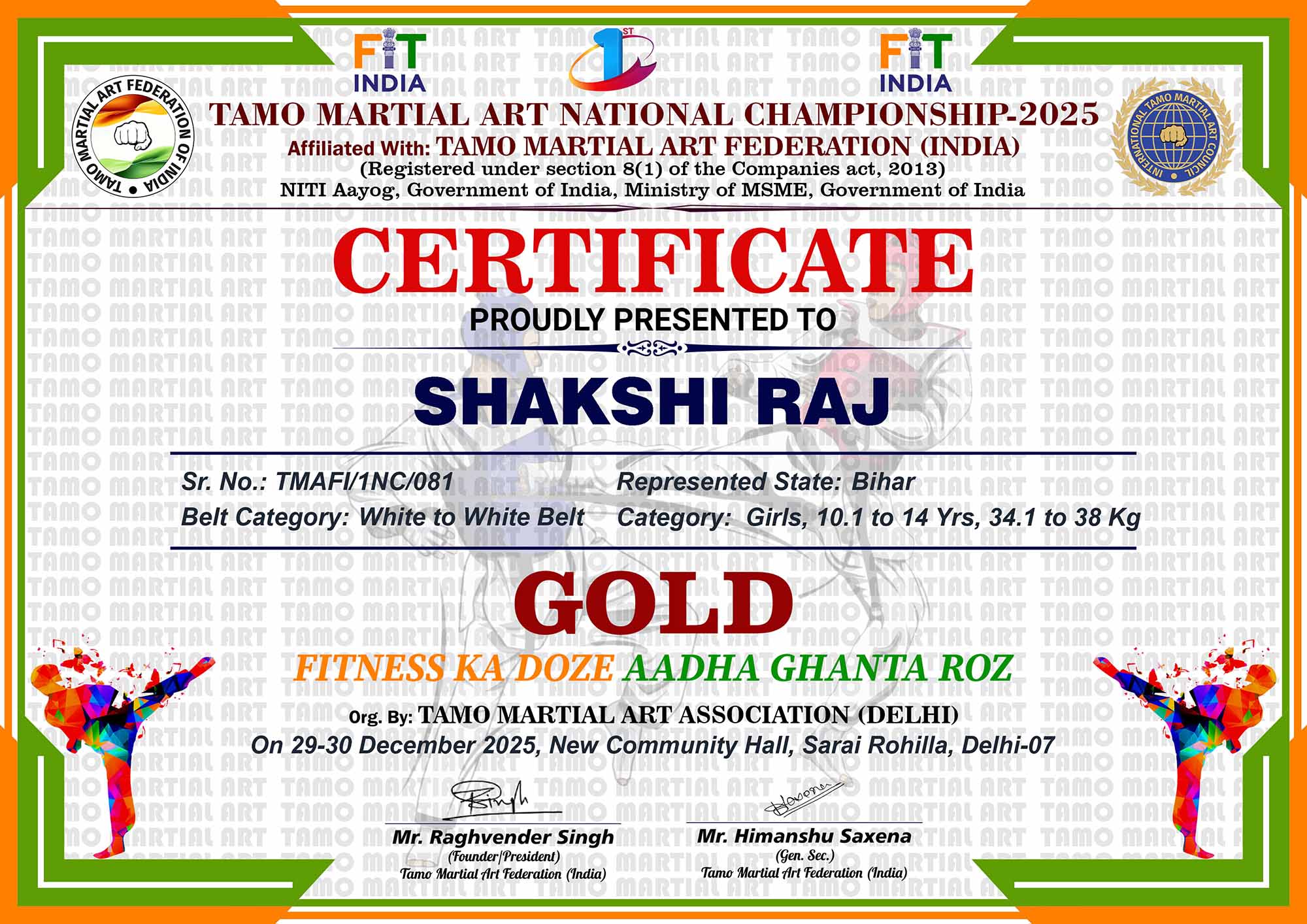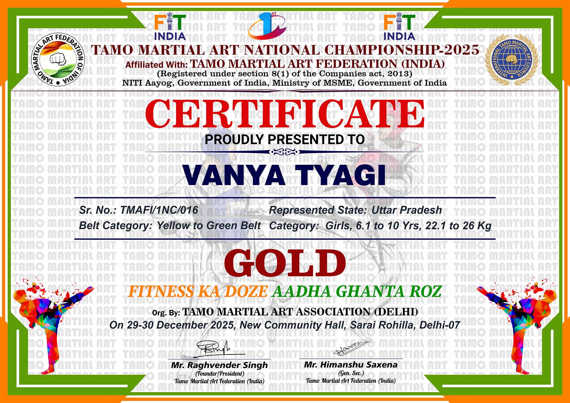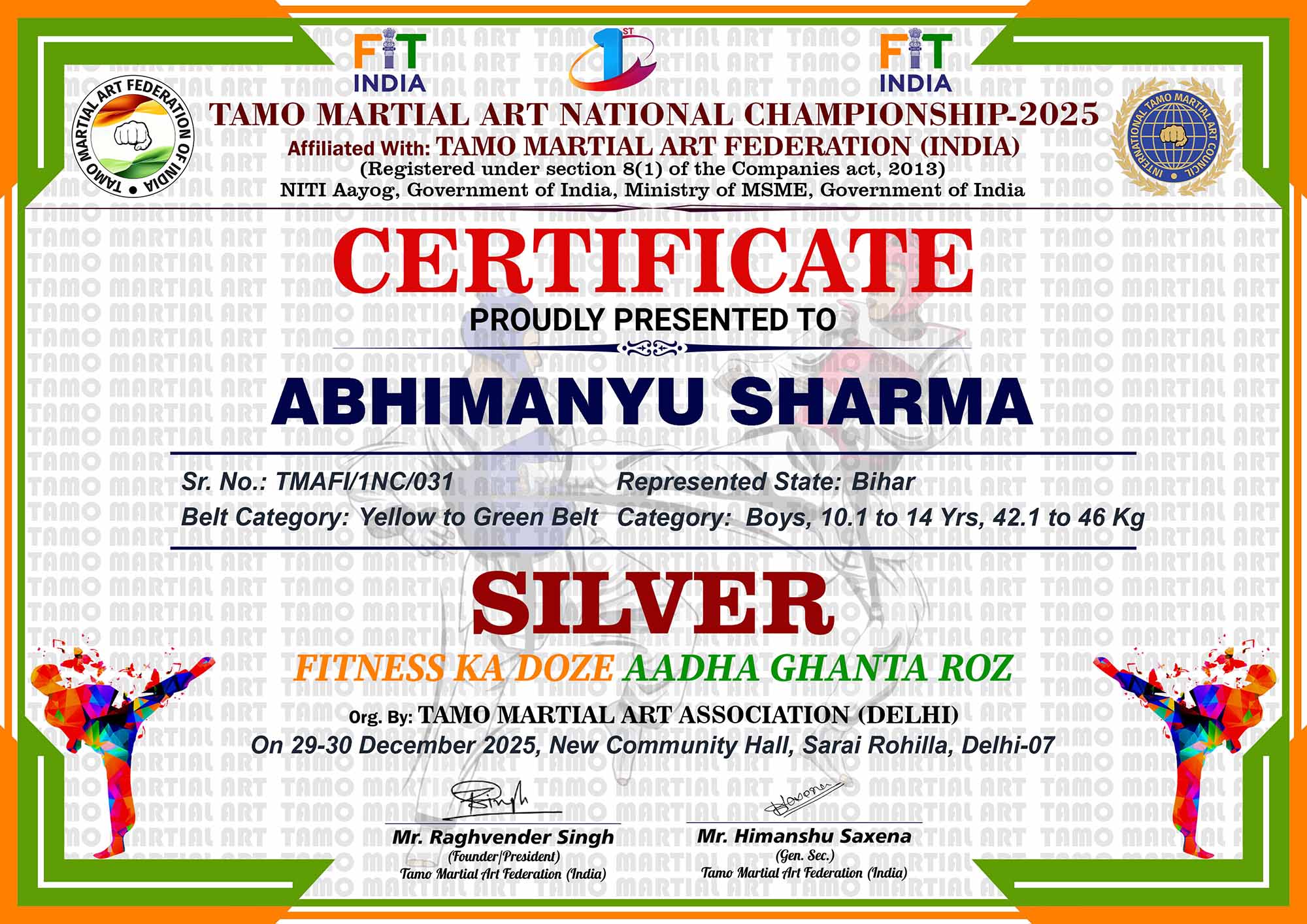 1st Tamo Martial Art National Championship-202529-30th December 2025, , Central - Delhi |
