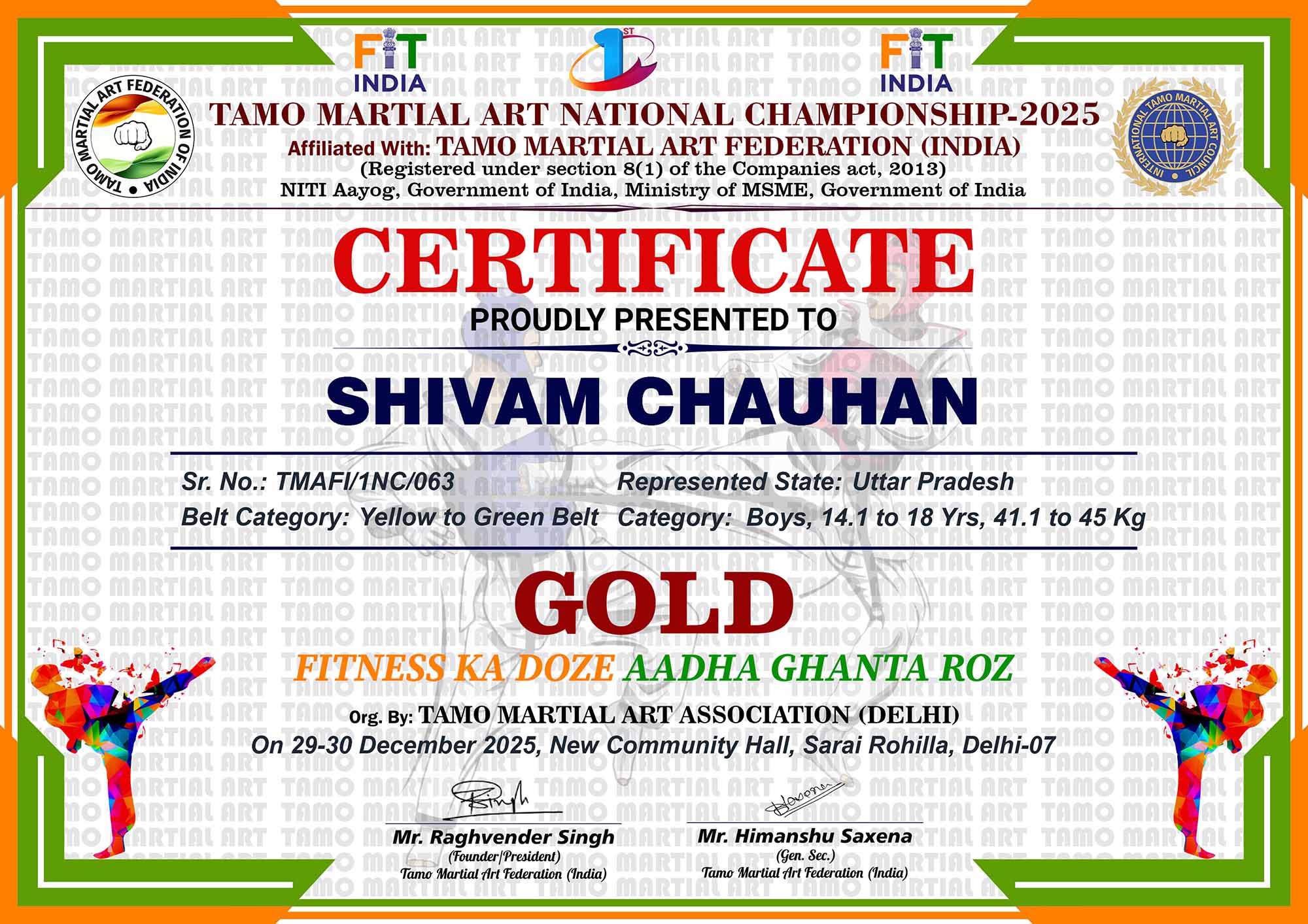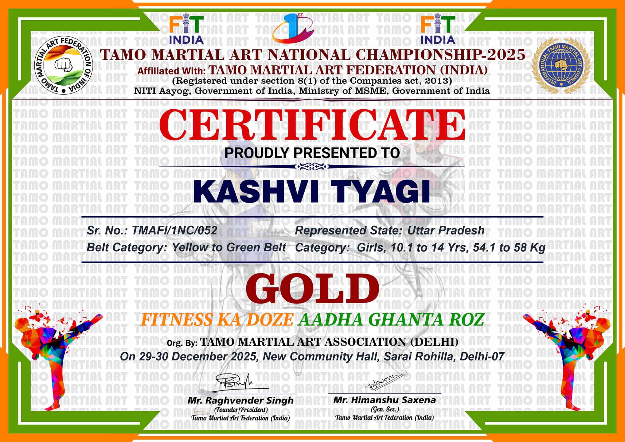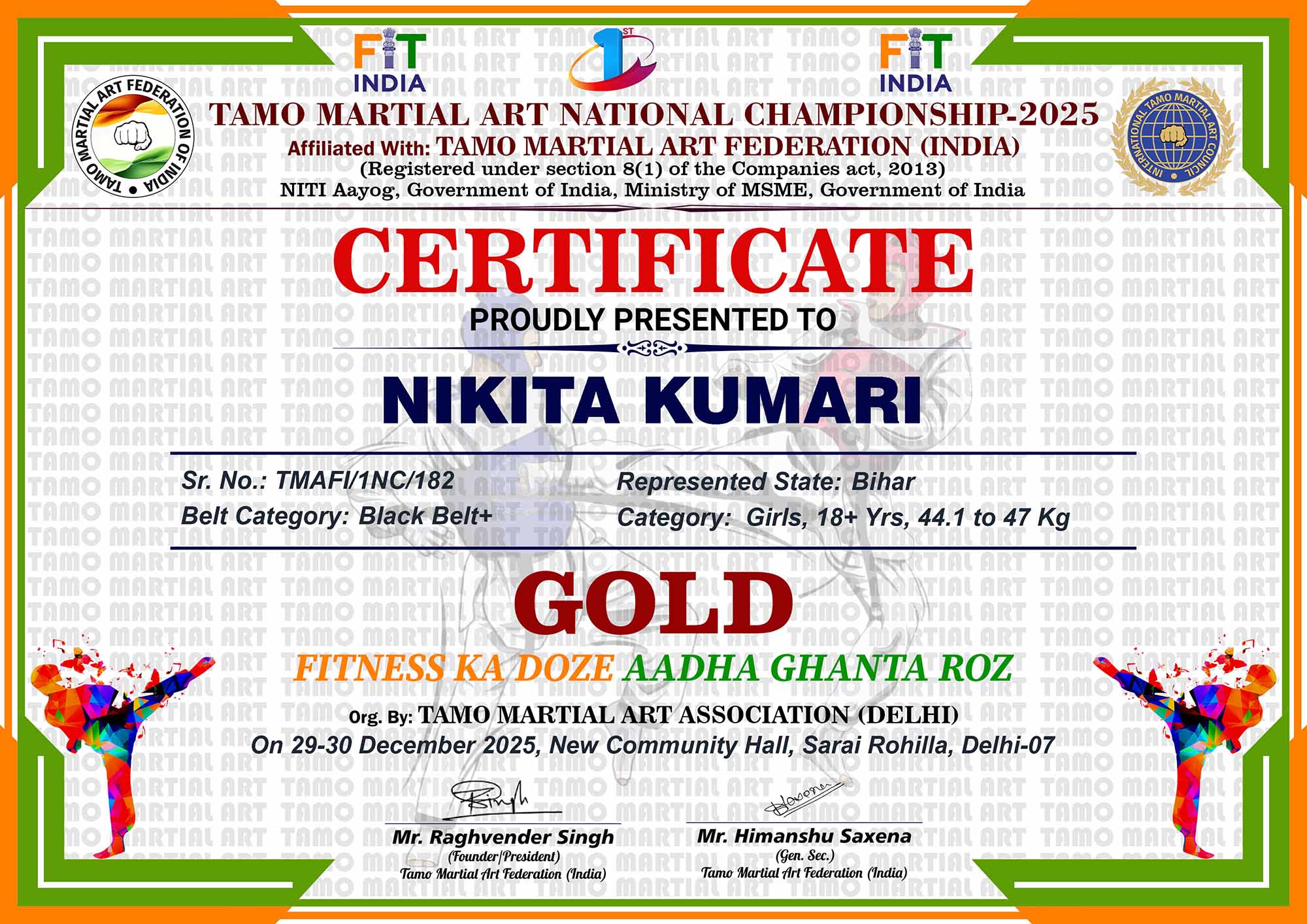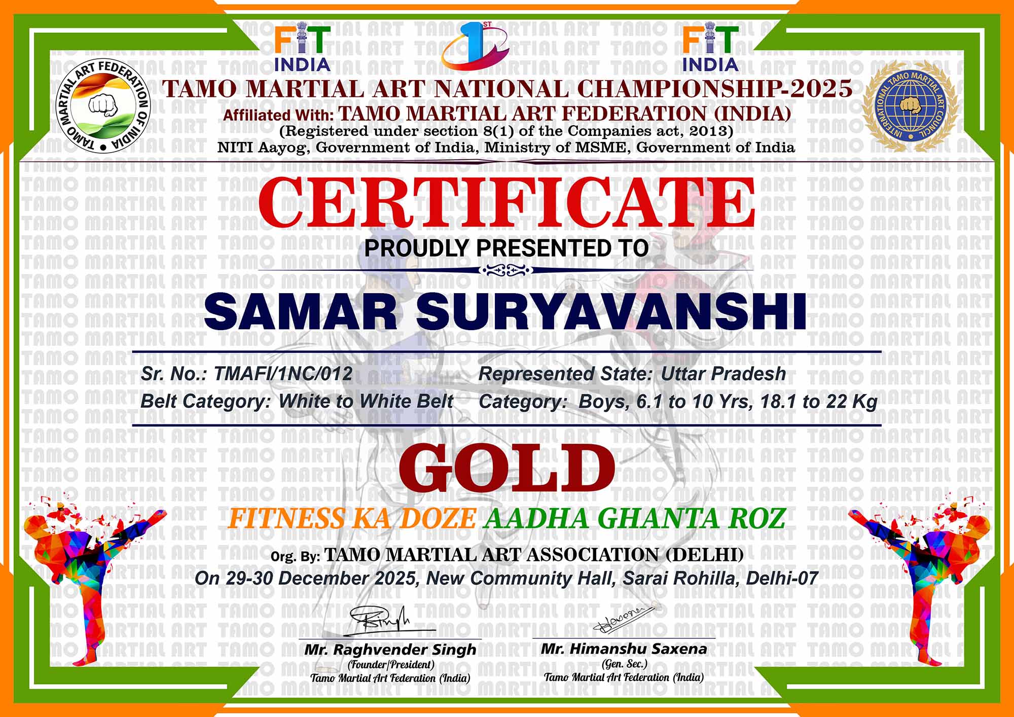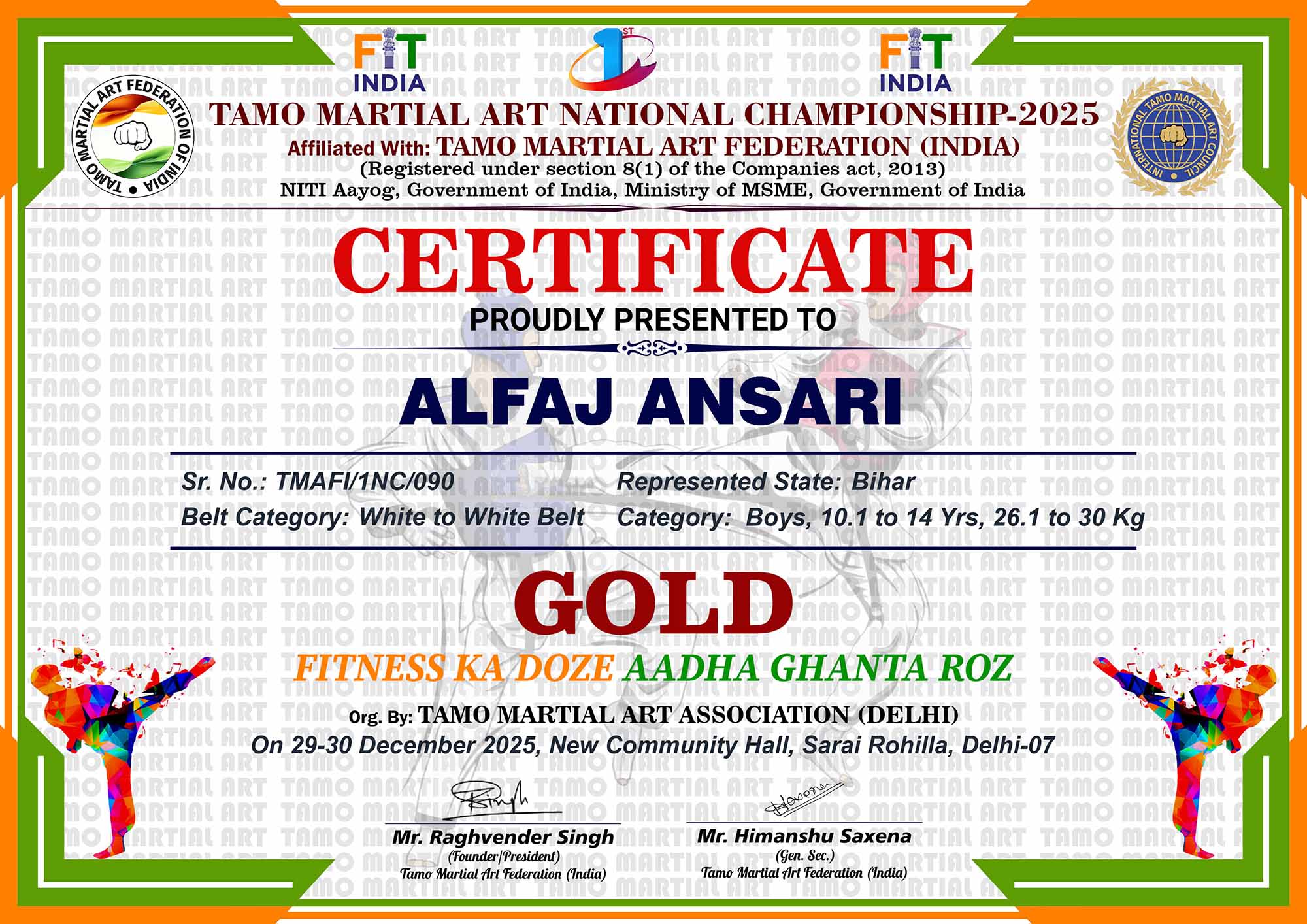 1st Tamo Martial Art National Championship-202529-30th December 2025, , Central - Delhi |
