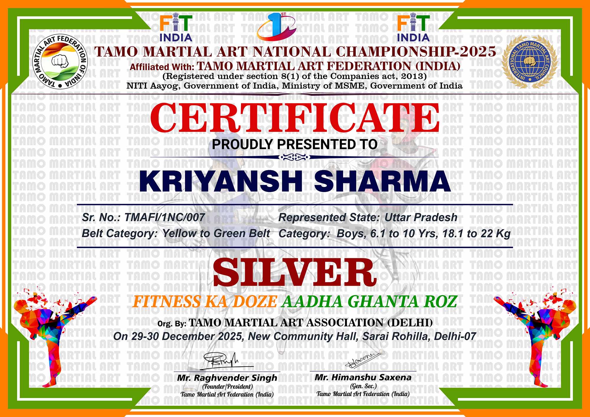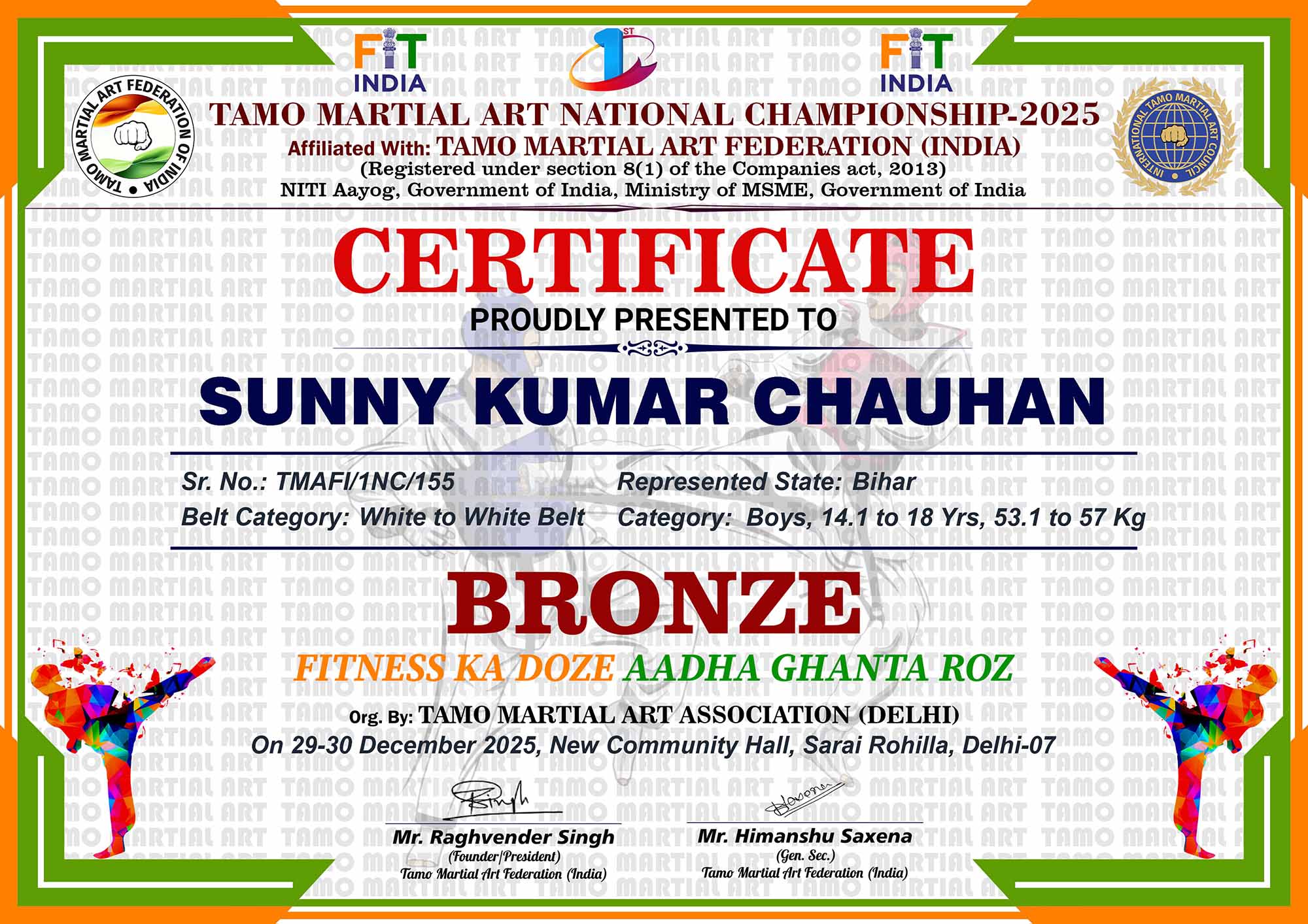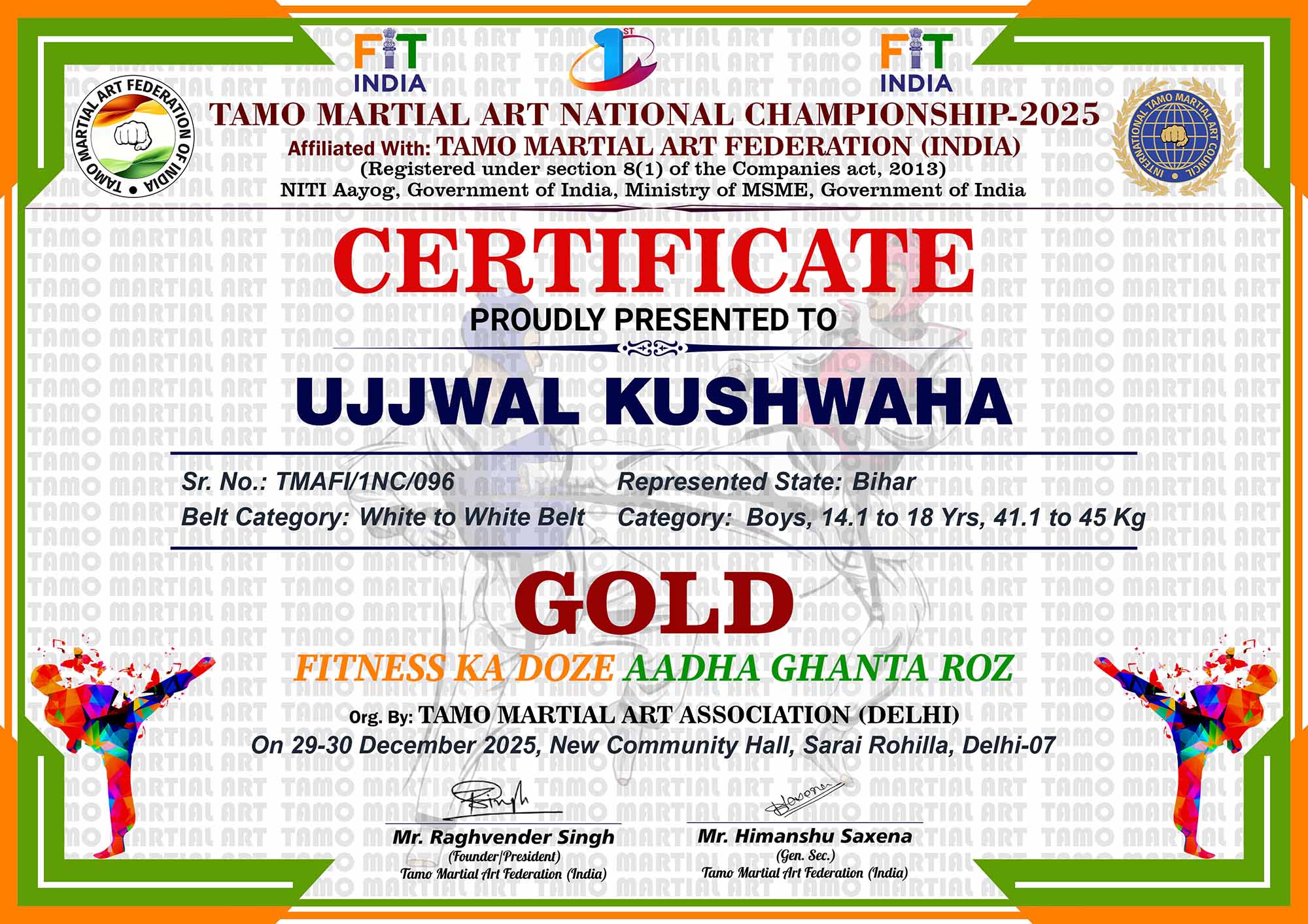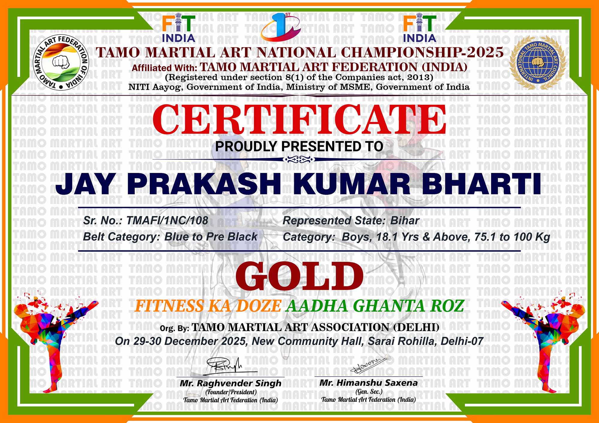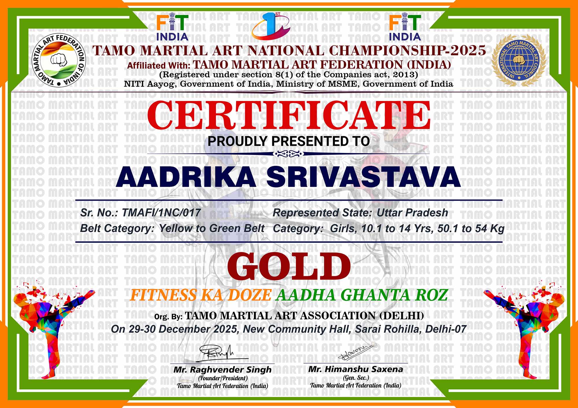 1st Tamo Martial Art National Championship-202529-30th December 2025, , Central - Delhi |