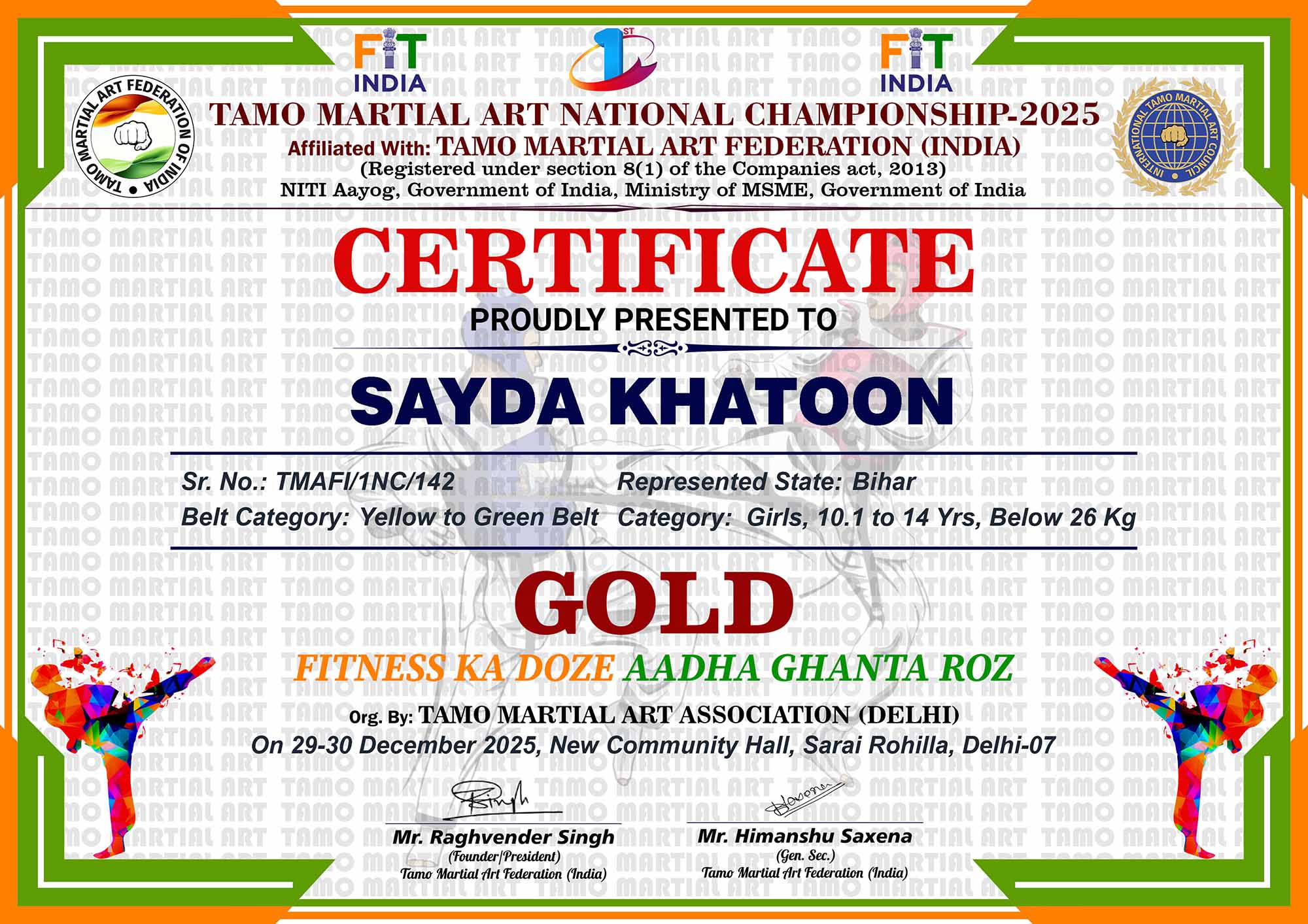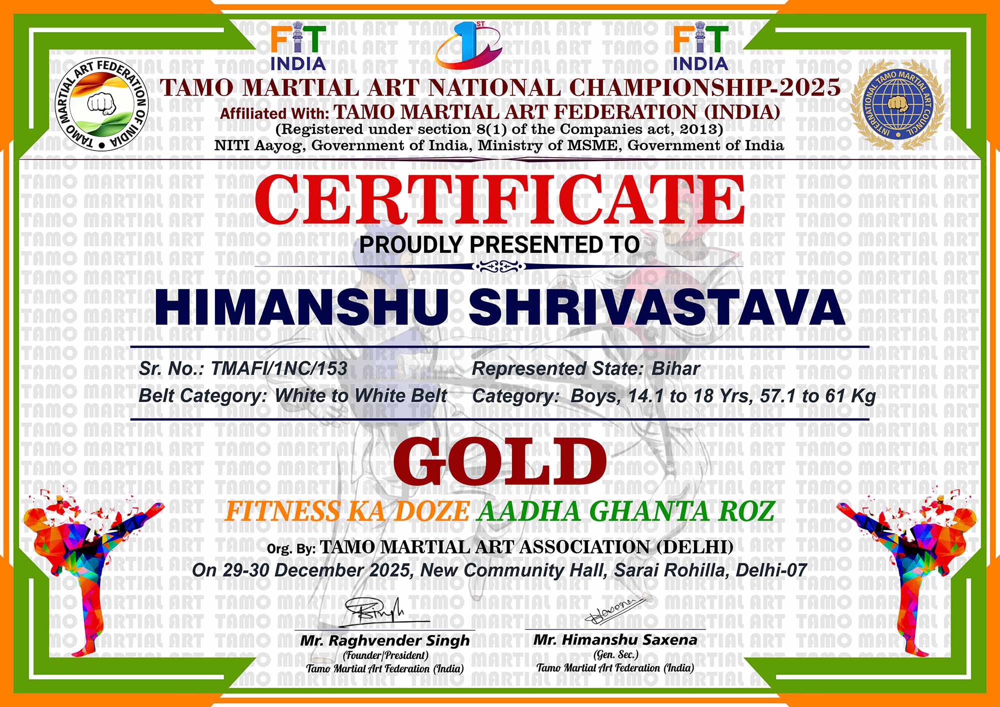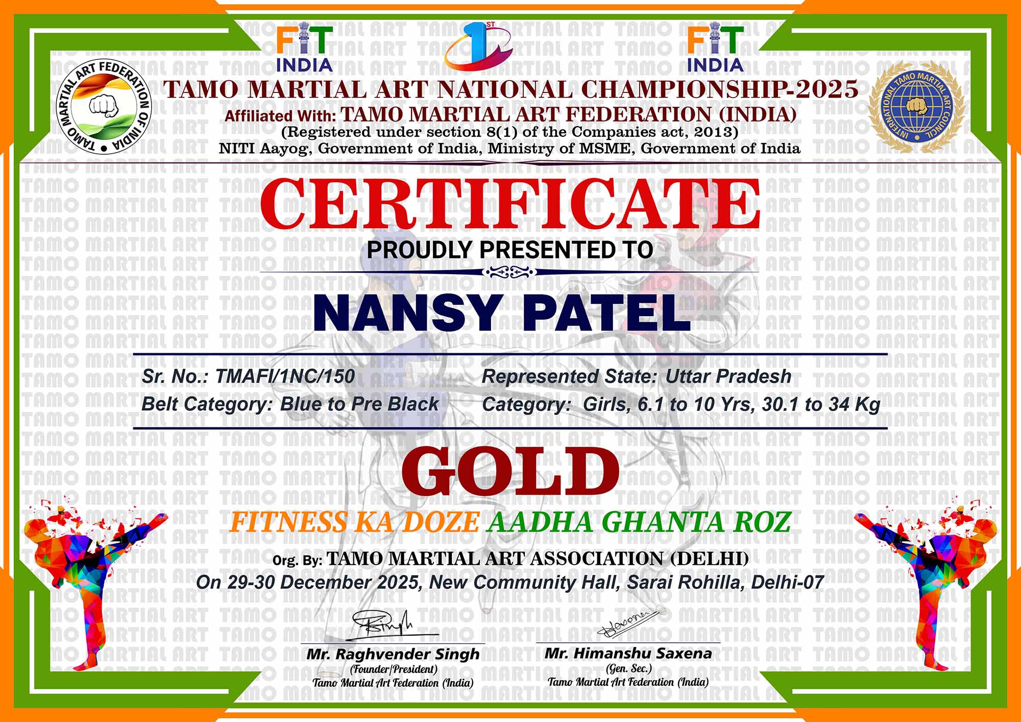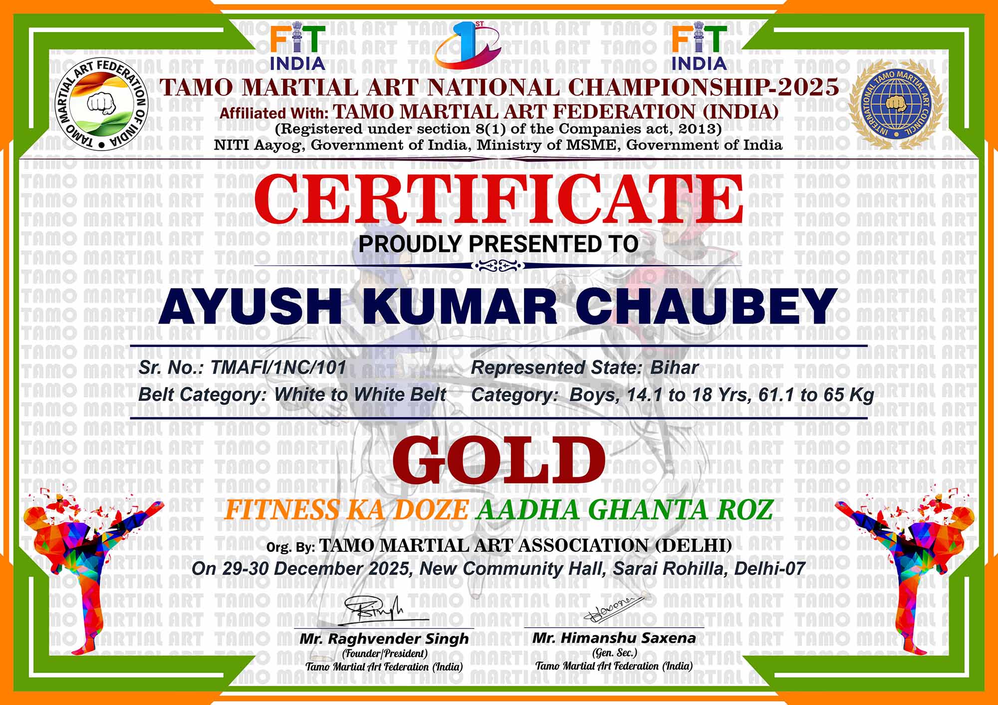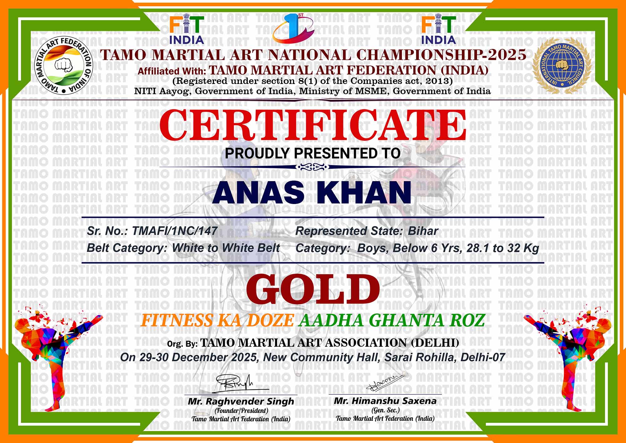 1st Tamo Martial Art National Championship-202529-30th December 2025, , Central - Delhi |