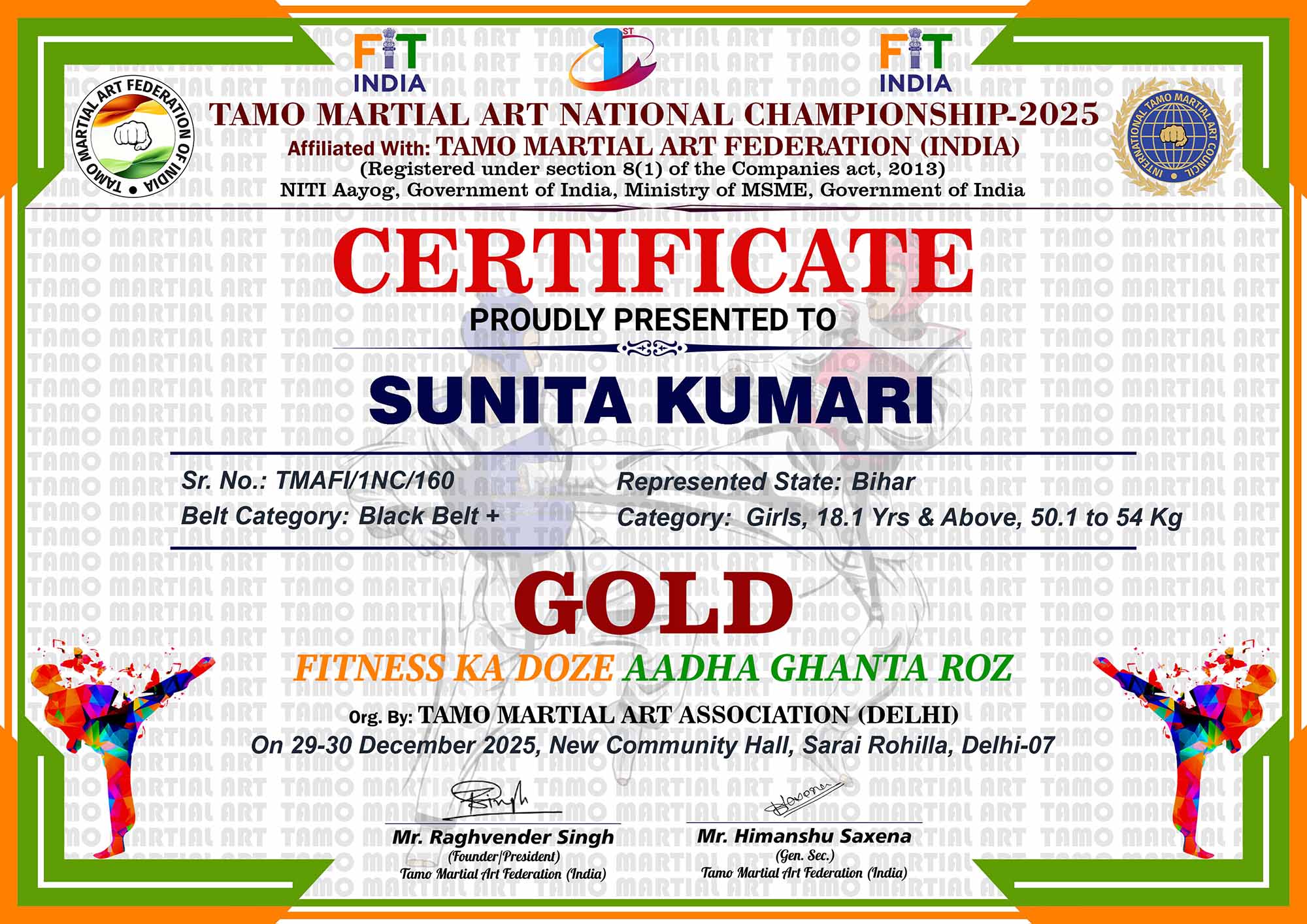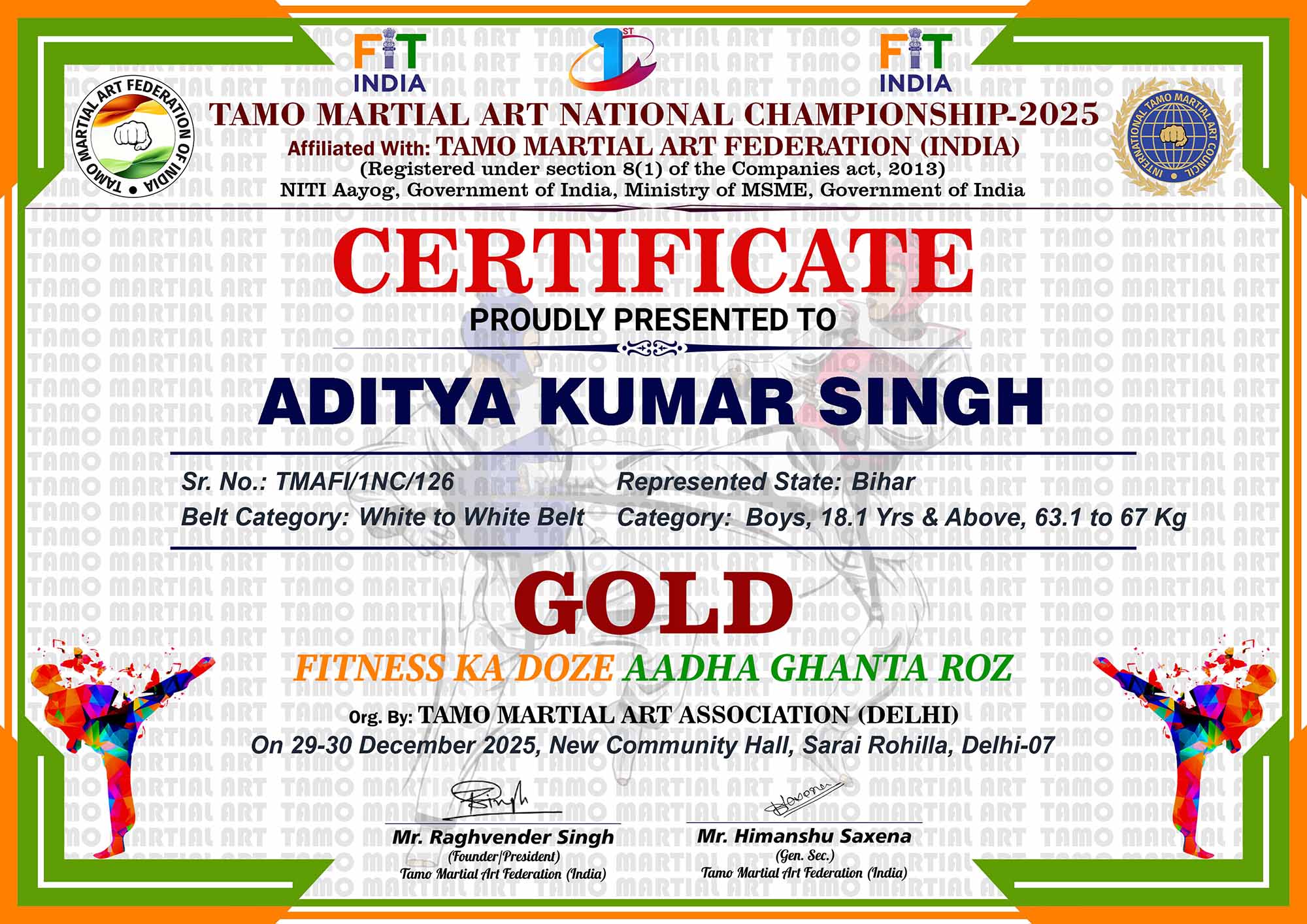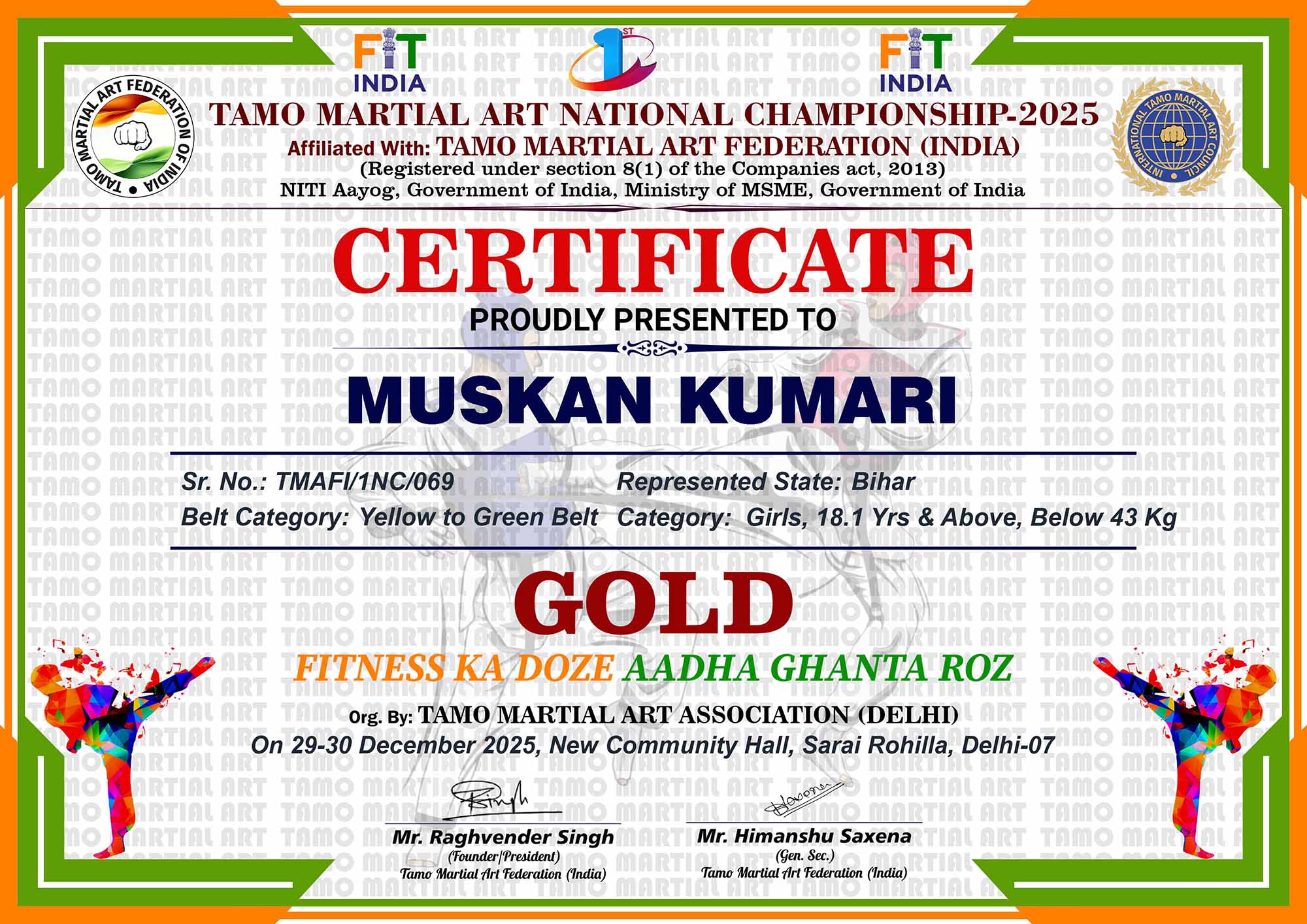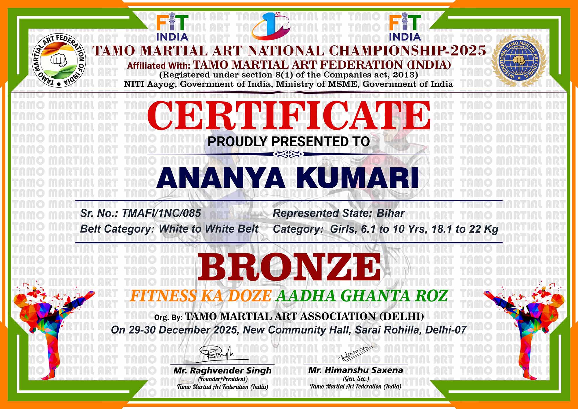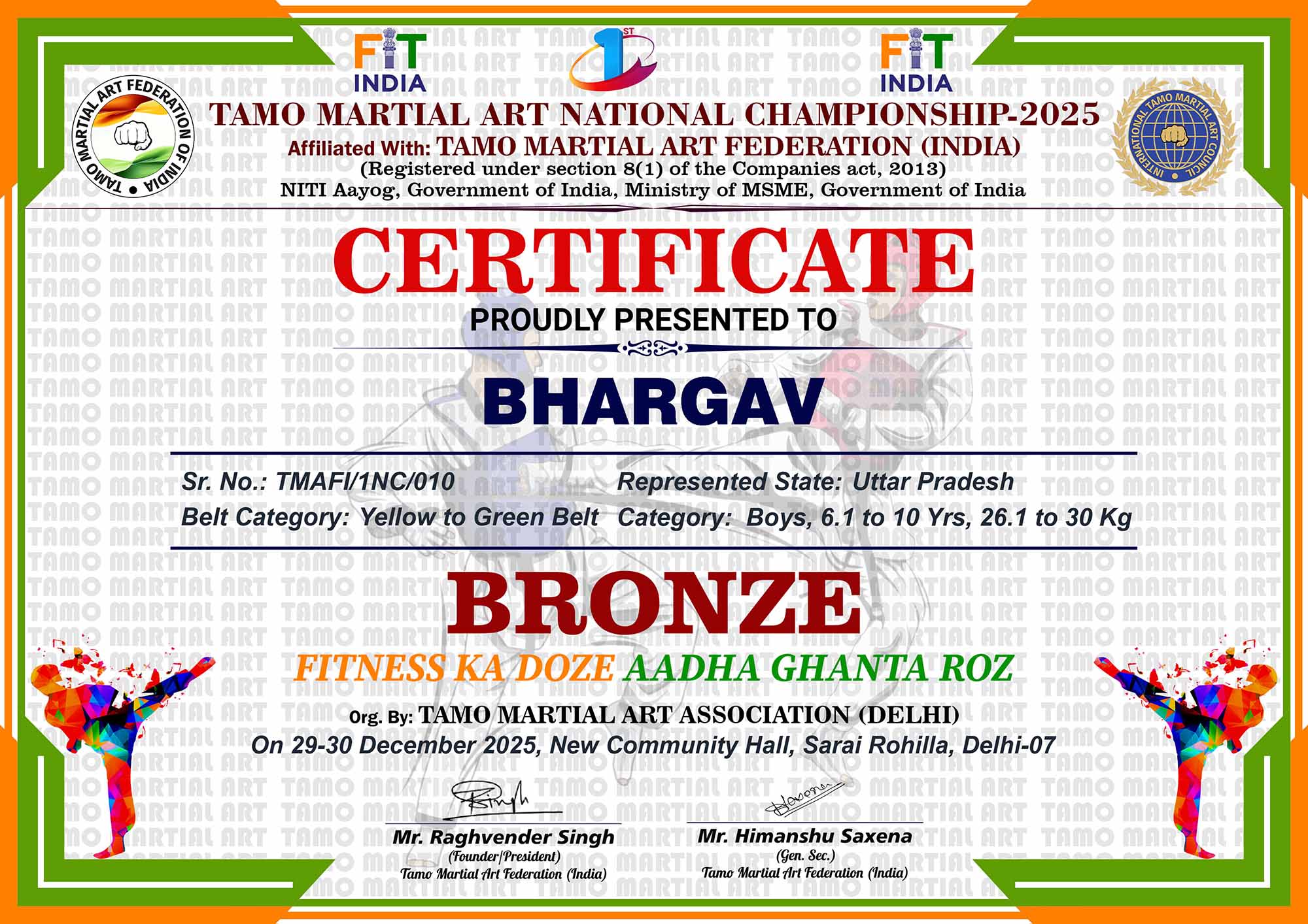 1st Tamo Martial Art National Championship-202529-30th December 2025, , Central - Delhi |