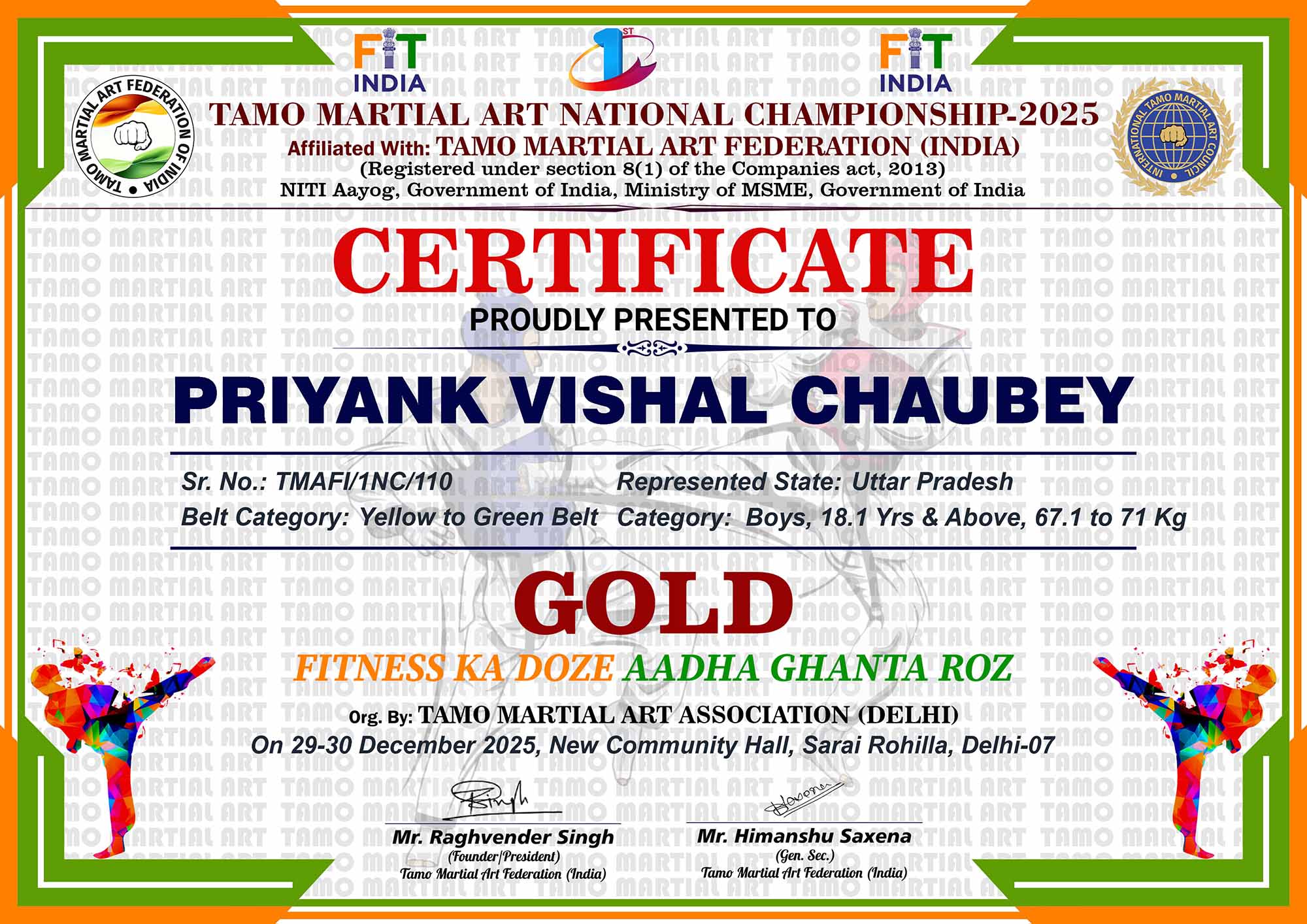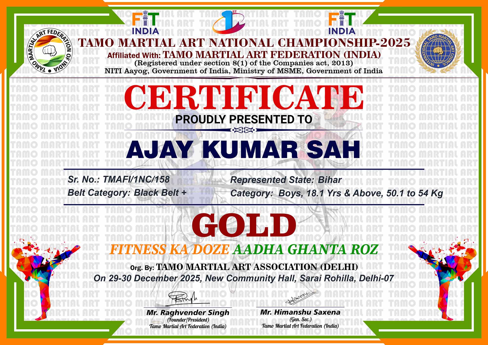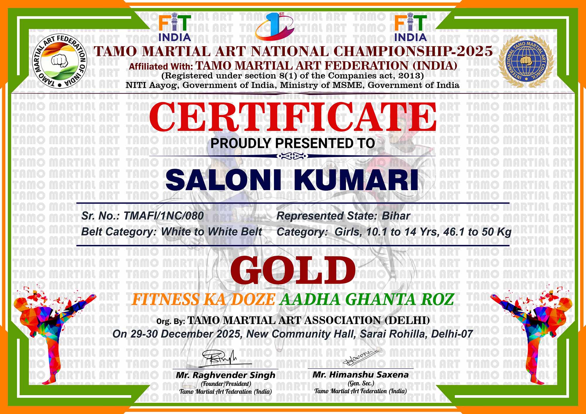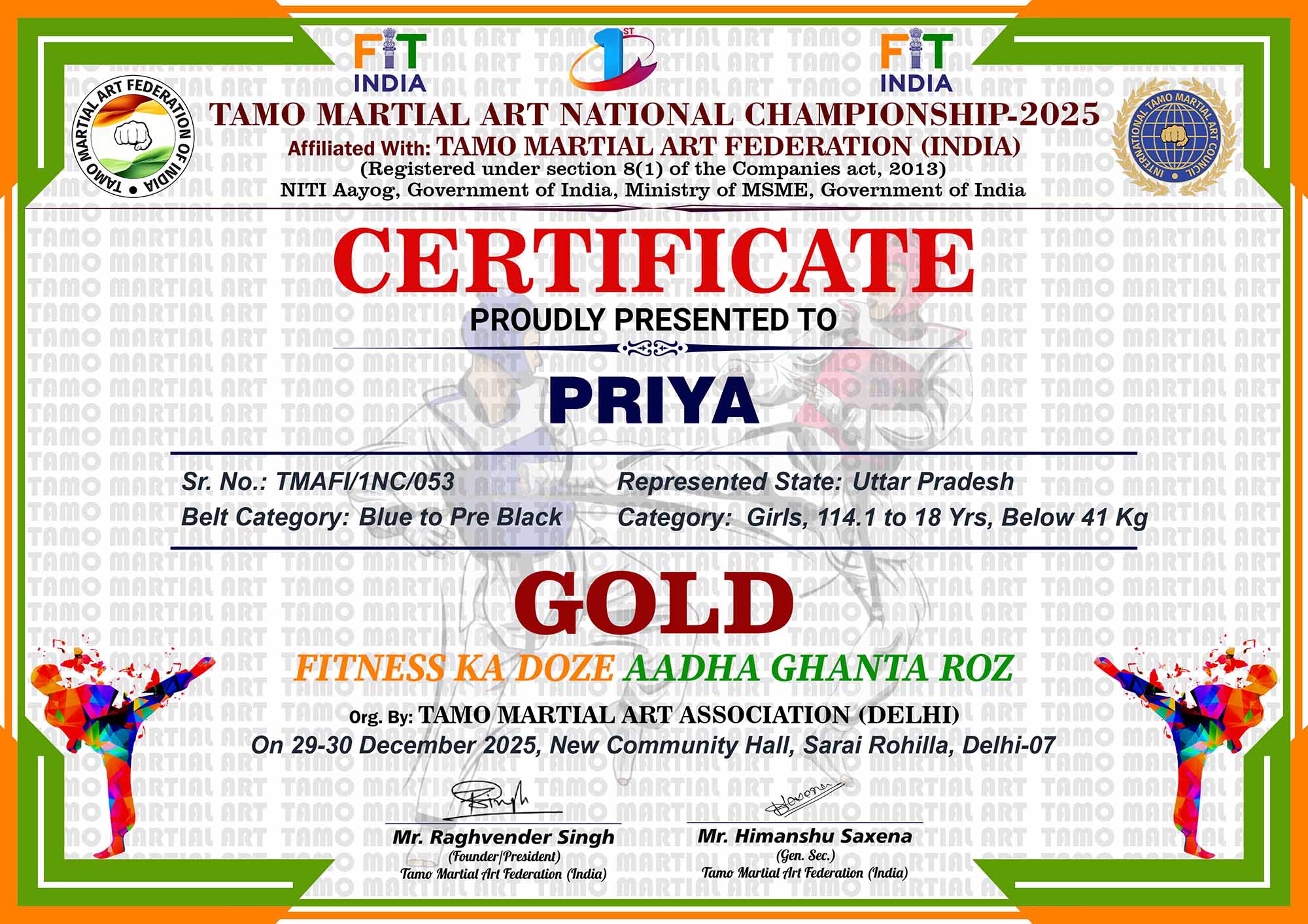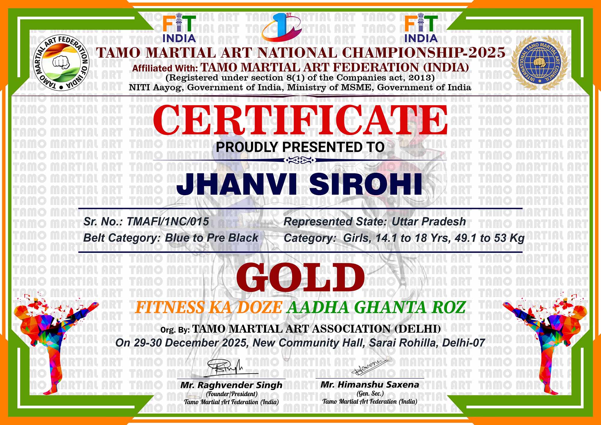 1st Tamo Martial Art National Championship-202529-30th December 2025, , Central - Delhi |
