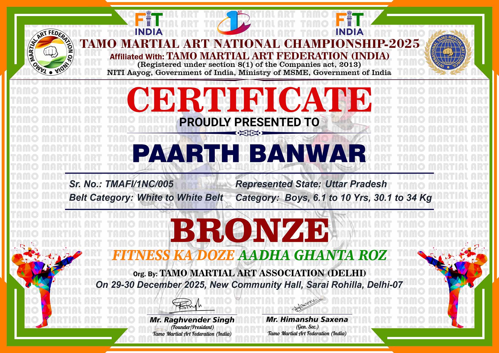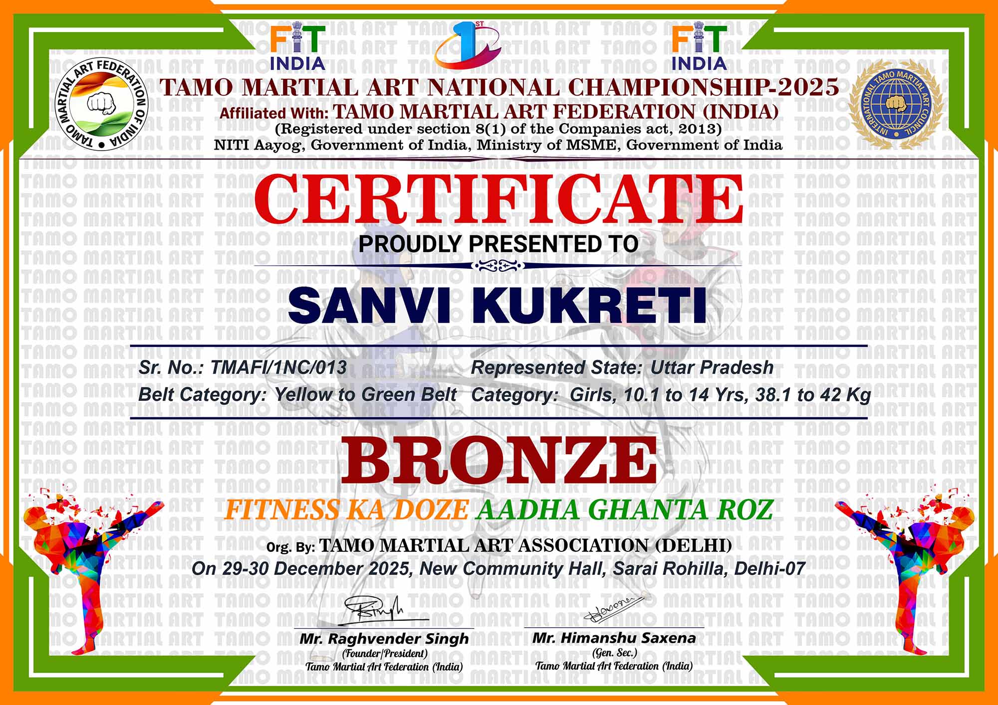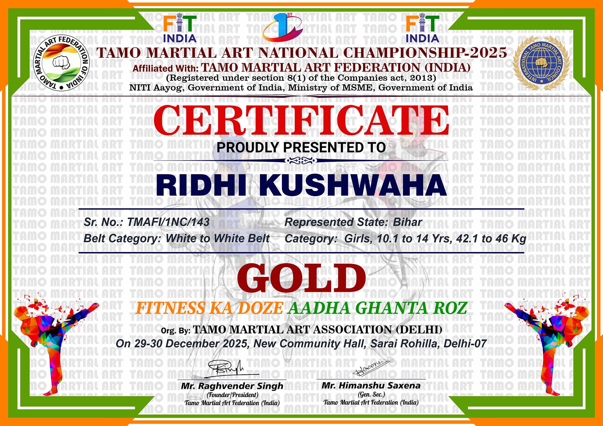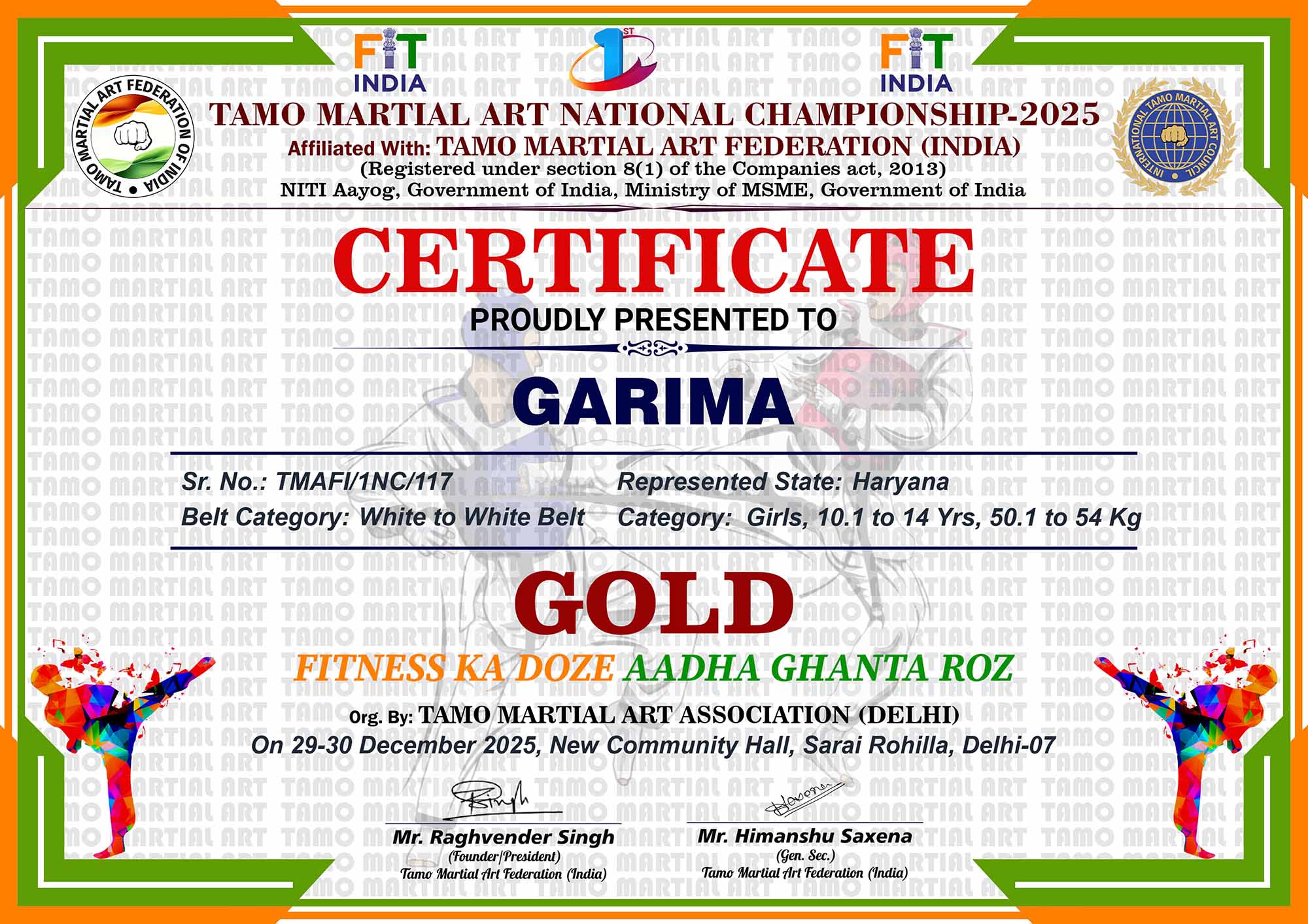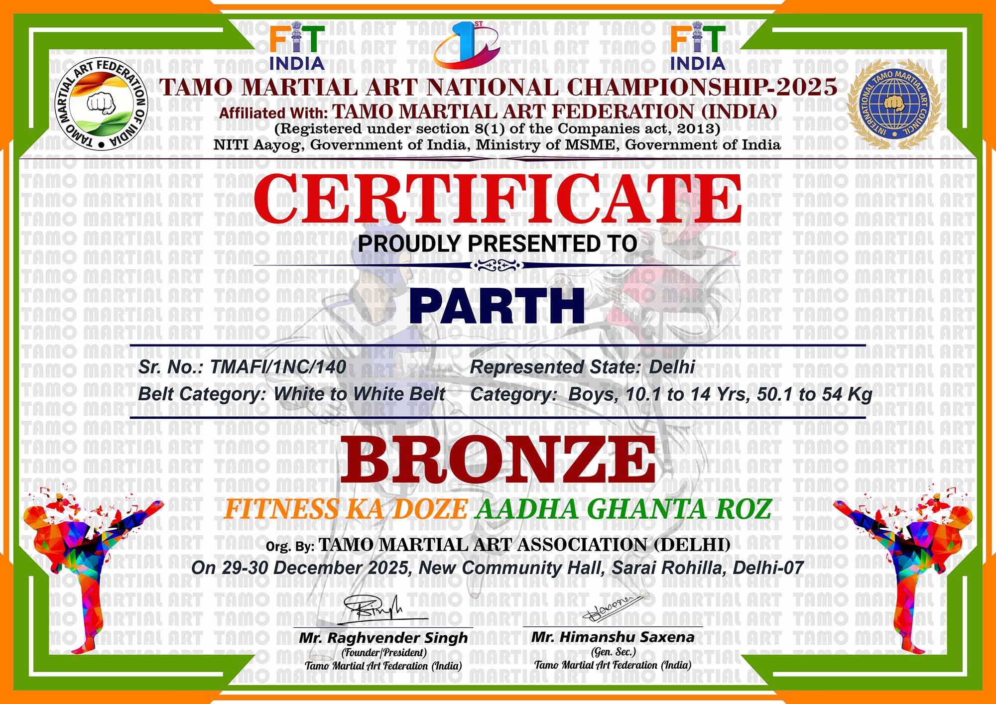 1st Tamo Martial Art National Championship-202529-30th December 2025, , Central - Delhi |
